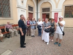 Našim milým průvodcem byl tentokrát kurátor a správce zámecké knihovny, pan Cyril Měsíc, s nímž jsme si postupně prohlédli Starou a Novou knihovnu, Kabinety mincí a hudby, Manský sál, kapli sv. Šebestiána a sály zámecké obrazárny, vše se zasvěceným komentářem o Kroměříži, sídle olomouckých biskupů a arcibiskupů, jejich sběratelských aktivitách, o práci zámeckého knihovníka a s možností haptického poznávání.