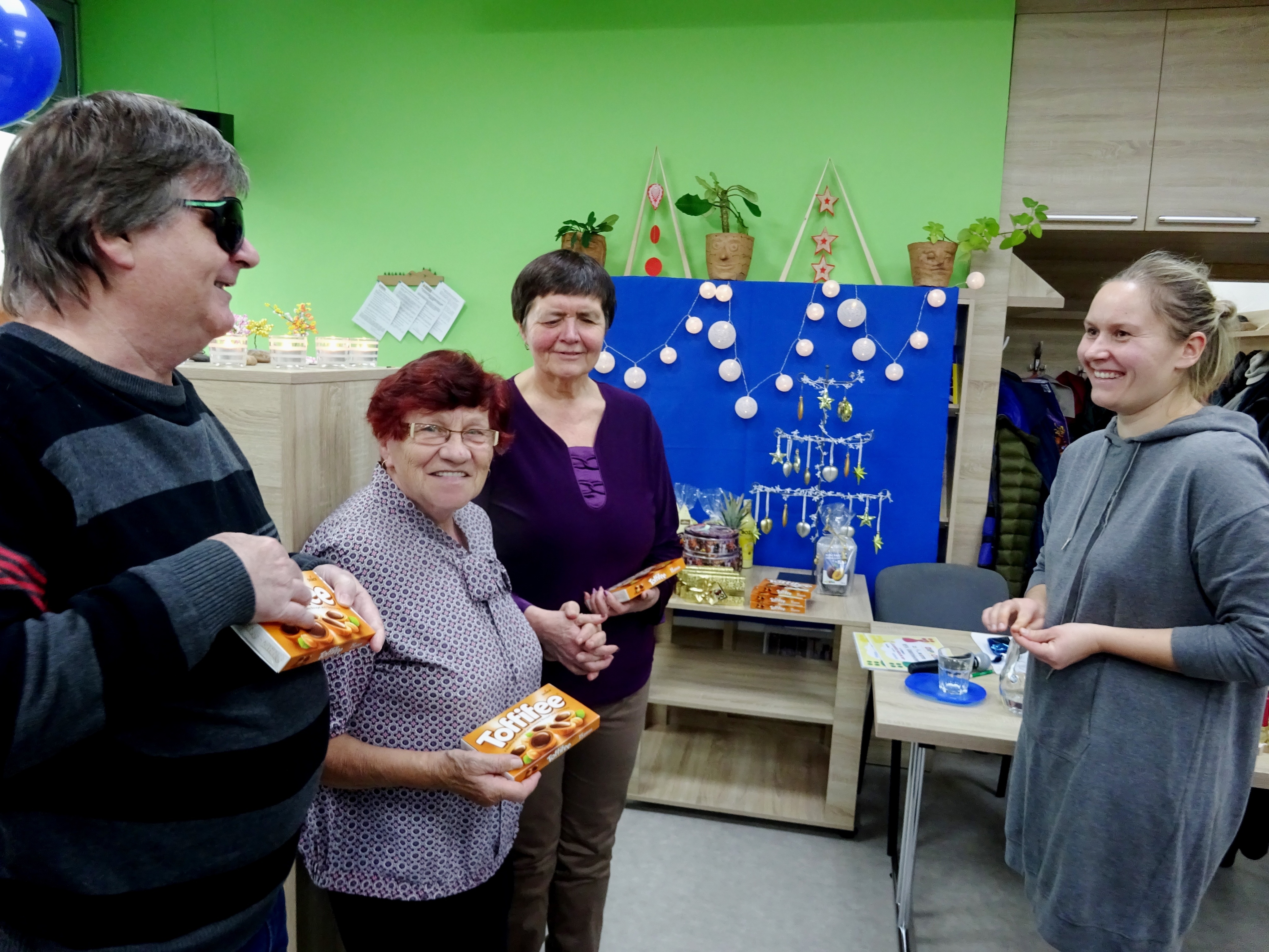 Během ní se opět děkovalo, nadělovalo - účastníky čtenářské výzvy, aktivisty při sbírce Bílá pastelka a soutěžící turnaje v Člověče nezlob se. Každý z příchozích pak dostal vánoční dáreček - keramické zvonečky z dílny našich keramiků, aby jim v teple domova pomohl přivolat letošního ježíška. Koštěm vánočního cukroví a sklenkou vína jsme si připili na nový, věříme že lepší, rok 2022.