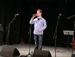 Role uvaděčky večera se výtečně ujala paní předsedkyně. Na samém začátku pozvala na podium pana Jana Pakoše vedoucího oddělení pro Oblastní odbočky a celostátní kluby SONS ČR, z. s., aby řekl několik slov o Sjednocené organizaci nevidomých a slabozrakých České republiky. Následně už přivítala Jakuba Kazdu s kapelou na scéně.