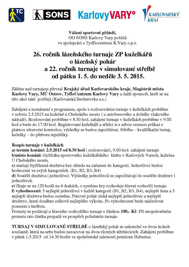 26. ročník lázeňského turnaje ZP kuželkářů o lázeňský pohár a 22.ročník turnaje v simulované střelbě od pátku 1. 5. do neděle 3. 5. 2015.
