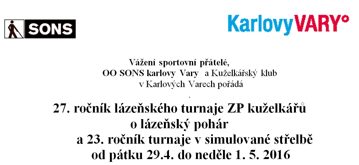 v sobotu 30.4.2016 na kuželně u Chebského mostu ( u autobusového a dolního vlakového nádraží). Rozlosování proběhne v 8.30 hod, zahájení turnaje v kuželkách proběhne v 9.00 hod a bude do 17.00 hod. Registrovaní kuželkáři a střelci si s sebou vezmou průkaz s platnou zdravotní kontrolou, výsledky se budou započítávat. Střelba – kvalifikační turnaj, kuželky – do přeboru republiky.