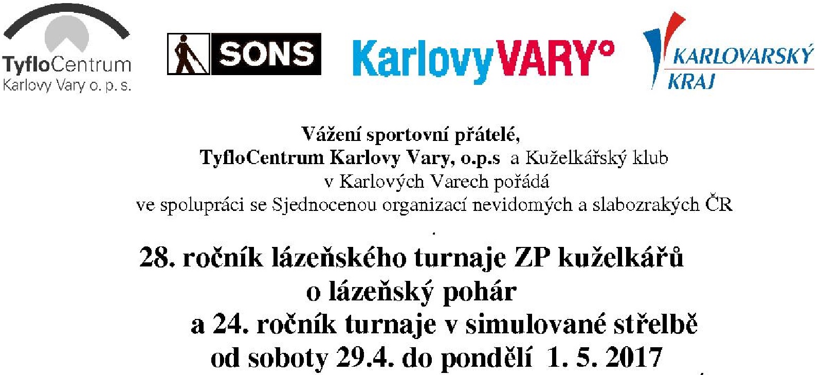 v neděli 30.4.2017 na kuželně u Chebského mostu ( u autobusového a dolního vlakového nádraží). Rozlosování proběhne v sobotu na středisku Hestie, zahájení turnaje v kuželkách proběhne v 8.30 hod a bude do 17.00 hod. Registrovaní kuželkáři a střelci si s sebou vezmou průkaz s platnou zdravotní kontrolou, výsledky se budou započítávat. Střelba – kvalifikační turnaj, kuželky – do přeboru republiky.
