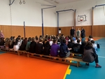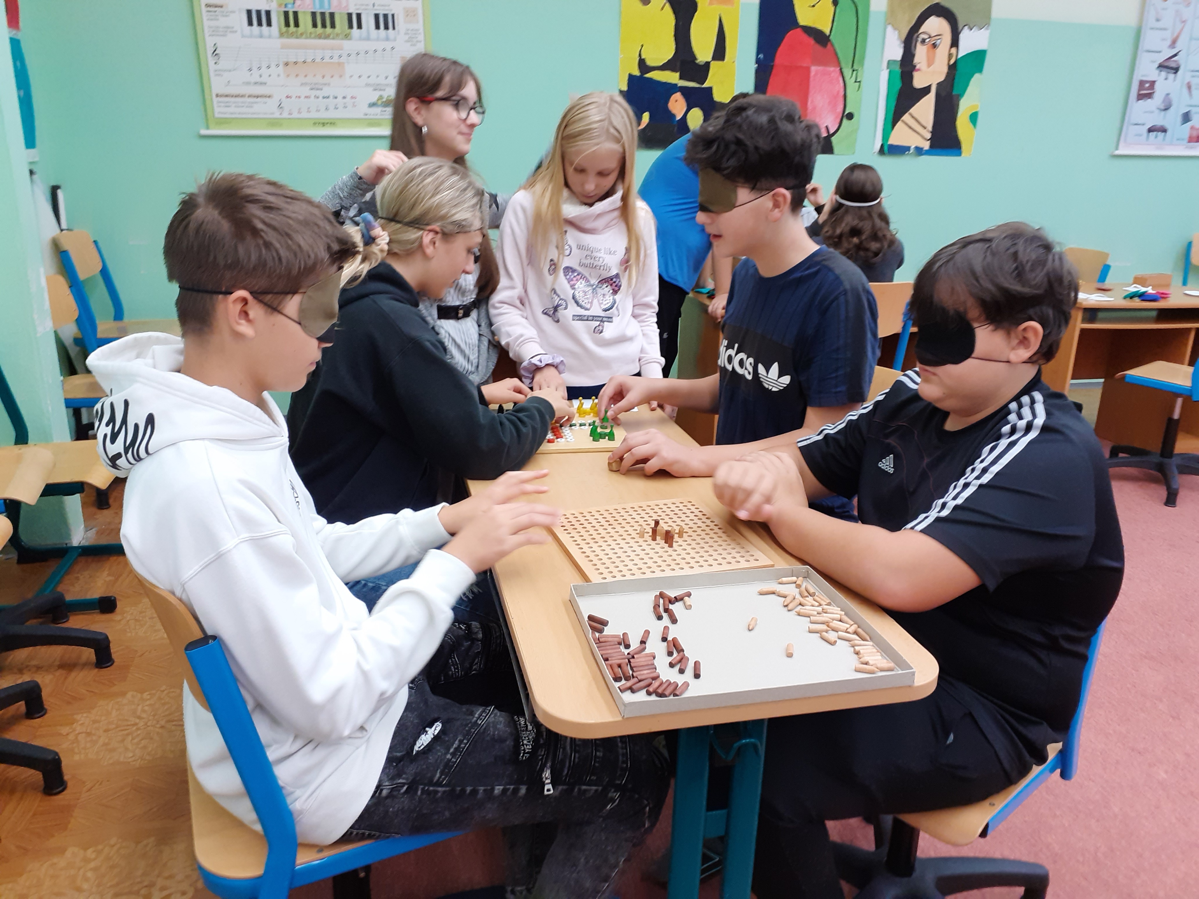 V pátek 30. 9. úderem 9 h. ranní zahájil Radek Žalud koncert pro 70 studentů 7. ročníku základní školy v Jeseníku. Zahájení koncertu se zúčastnila i starostka města Jeseník, paní Zdeňka Blišťanová, která se přišla osobně pozdravit se zpěvákem a studenty školy. Hodinové hudební vystoupení Radek proložil povídáním a sdílením zážitků ze života se zrakovým postižením. I na školním koncertě zazněly písně na přání, tentokrát skladby současných zpěváků a muzikálové melodie. Byl čas i na zodpovězení dotazů z řad publika. Po koncertě se studenti účastnili workshopu, na kterém si mohli vyzkoušet práci s pomůckami pro zrakově postižené a společenské hry upravené pro nevidomé. Vše bez kontroly zraku. Nejvíce zaujala chůze s bílou holí a možnost napsat si své jméno v Braillově písmu na Pichtově psacím stroji.