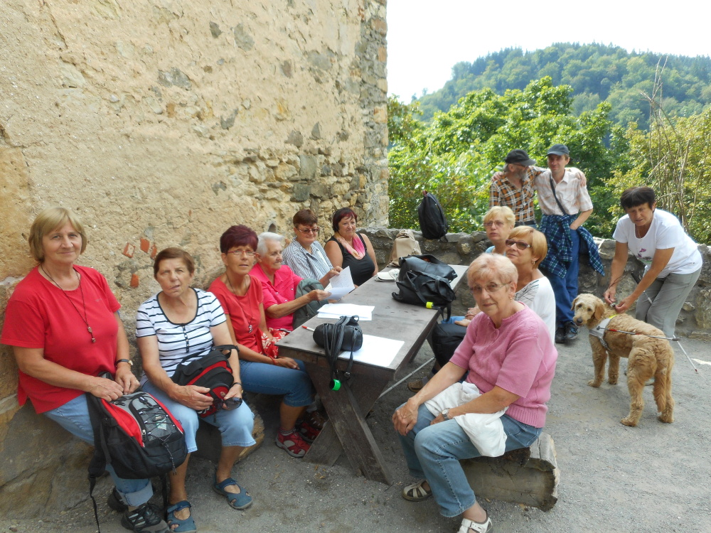 V poznávání historie jsme pokračovali na hradě v Boskovicích. Hrad nás přivítal okrouhlou věží s renesančním cimbuřím. Jeho historie se začala psát v polovině 13. století. Během následujících století se měnili vlastníci hradu, probíhaly stavení úpravy. V současné době je hrad v majetku rodiny Mensdorff – Pouilly. Dochovalo se torzo hradního paláce, z něhož je krásný výhled do malebné krajiny. Protože nám počasí přálo, pokochali jsme se překrásným okolím. Jako technická zajímavost nás zaujala 26 metrů hluboká studna poháněná dřevěným šlapacím kolem, jediným funkčním v republice. Erb pánů z Boskovic se sedmizubým hřebenem, kteří byli majiteli hradu v 15. století, se později stal znakem města Boskovic. Příjemnou procházku jsme zakončili posezením při kafíčku.