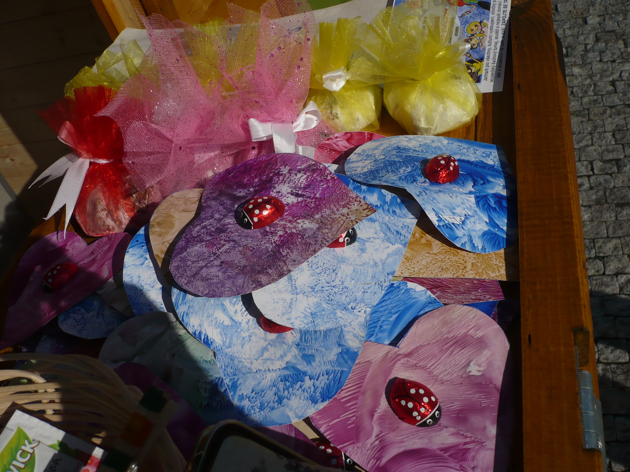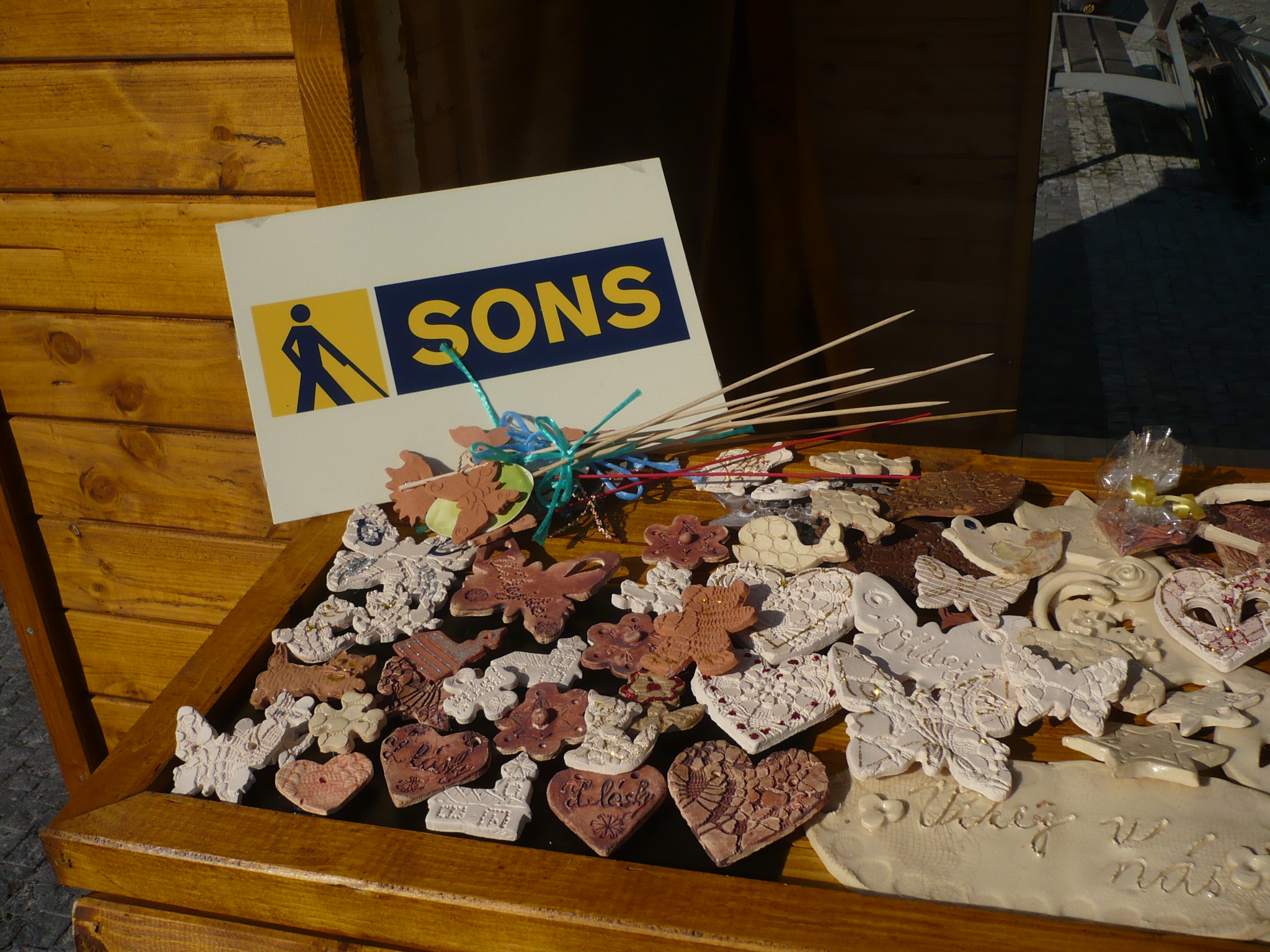 TŘETÍ JESENICKÉ TRHY, NA KTERÝCH PRAVIDELNĚ PREZENTUJEME NAŠI ODBOČKU SONS, JSOU V PLNÉM PROUDU. V SOBOTU 30. DUBNA JSME MĚLI OPĚT STÁNEK NA NÁMĚSTÍ. PŘIPRAVILI JSME SI RŮZNÉ VÝROBKY, ALE TAKÉ NĚCO PRO NAŠE NEJMENŠÍ. SKLÁDAČKY, MALOVÁNÍ OBRÁZKŮ, VYBARVOVÁNÍ MANDAL A KRESLENÍ RŮZNÝCH ZVÍŘÁTEK NA DĚTSKÉ OBLIČEJÍČKY EKOLOGICKÝMI VOSKOVKAMI. TOTO OCENILI NAŠI NEJMENŠÍ. NASTAVOVALI TVÁŘIČKY A NECHALI SI NA NĚ MALOVAT ČUMÁČKY, VOUSKY A SRDÍČKA. TAKŽE JSME Z NICH VYTVÁŘELI MÁJOVÁ KOŤÁTKA. VE STÁNKU JSME PAK MĚLI KERAMIKU VLASTNÍ VÝROBY, KERAMICKÉ MAGNETKY Z NAŠÍ TVORBY, PŘIPRAVILI JSME PYTLÍČKY S MOŘSKOU SOLÍ A OREGANEM, KORNOUTKY S KŘÍŽALAMI. OLGA KALENSKÁ UPEKLA ZAVAŘENINOVOU BUCHTU. LIDÉ SI NÁS PAMATUJÍ Z MINULÝCH TRHŮ, PROTO K NÁM RÁDI ZAVÍTAJÍ A DISKUTUJÍ O OČNÍ PROBLEMATICE. PRIŠLI JSME I S NOVÝM NÁPADEM, FOTOGRAFUJEME DĚTI PŘI PRÁCI I PŘI PÓZOVÁNÍ A KDO MÁ ZÁJEM, TOMU FOTOGRAFIE ZAŠLEME MAILEM. TATO SOBOTA PŘINESLA VELKOU RADOST NÁM VŠEM, POČASÍ NÁM PŘÁLO A DOKONCE JSME MĚLI PŘED STÁNKEM KROMĚ LAVIČEK S RŮZNÝMI HRAMI A SKLÁDAČKAMI I STOLEČEK S PLÁŽOVÝM LEHÁTKEM, TAKŽE NAŠE ZÁKOUTÍ PŘIPOMÍNALO BAHAMY. UŽ NYNÍ SE TĚŠÍME NA DALŠÍ AKCI. NA VČEREJŠÍM KLUBU JSME SPOLEČNĚ ZDOBILI KERAMICKÁ ZVÍŘÁTKA, KE KTERÝM JIŽ MÁME NAKOUPENY MAGNETKY.