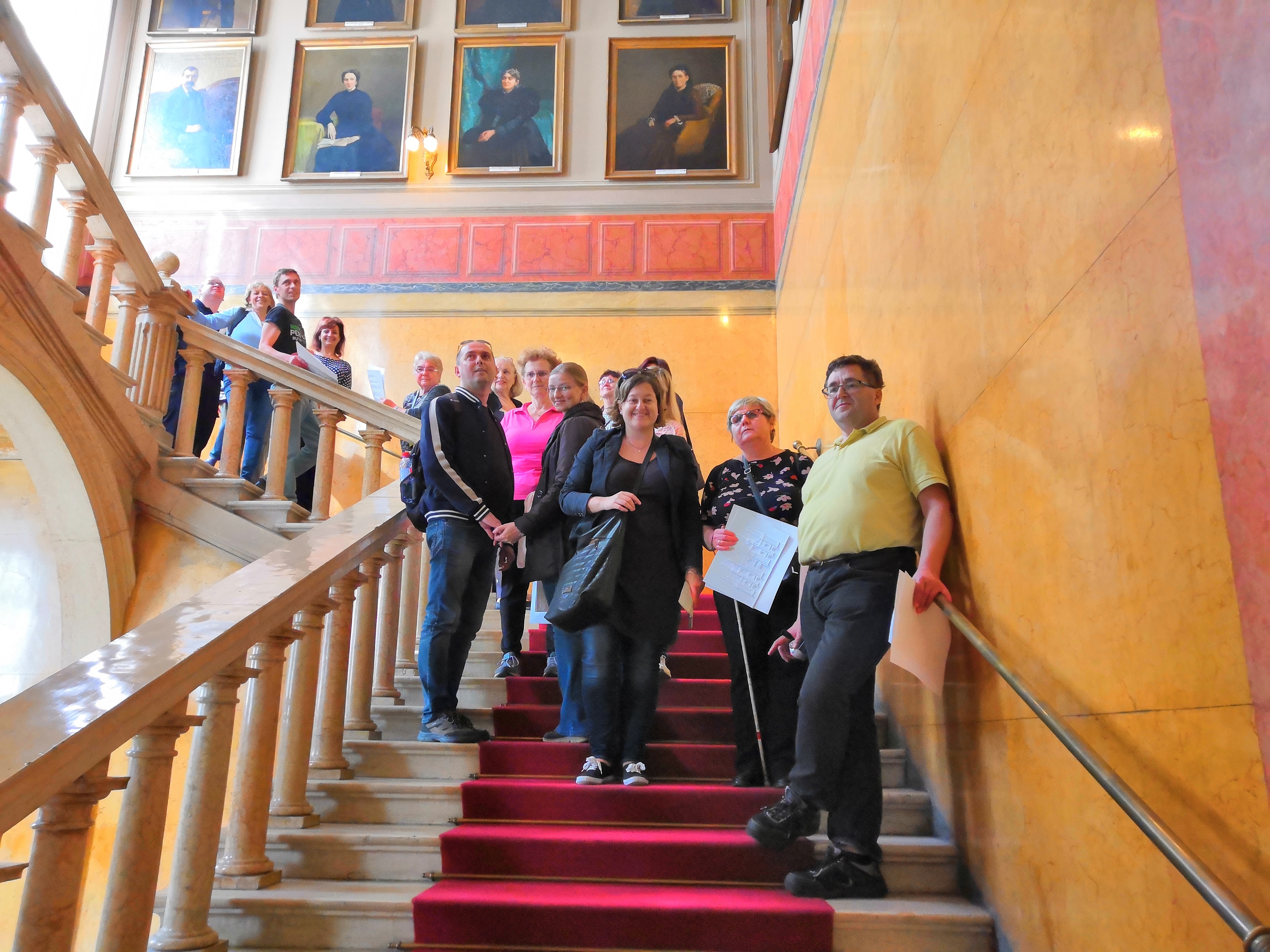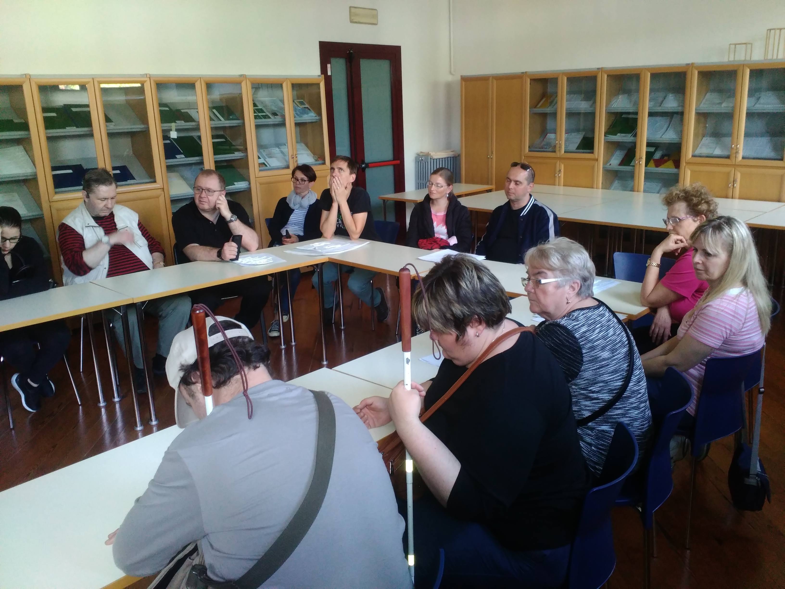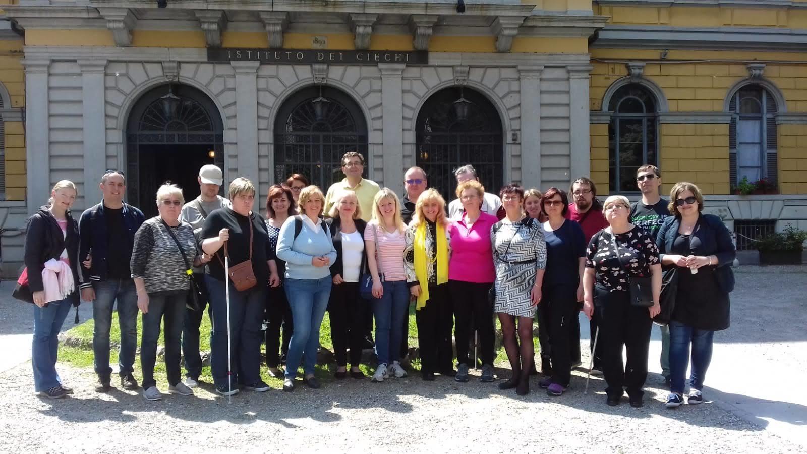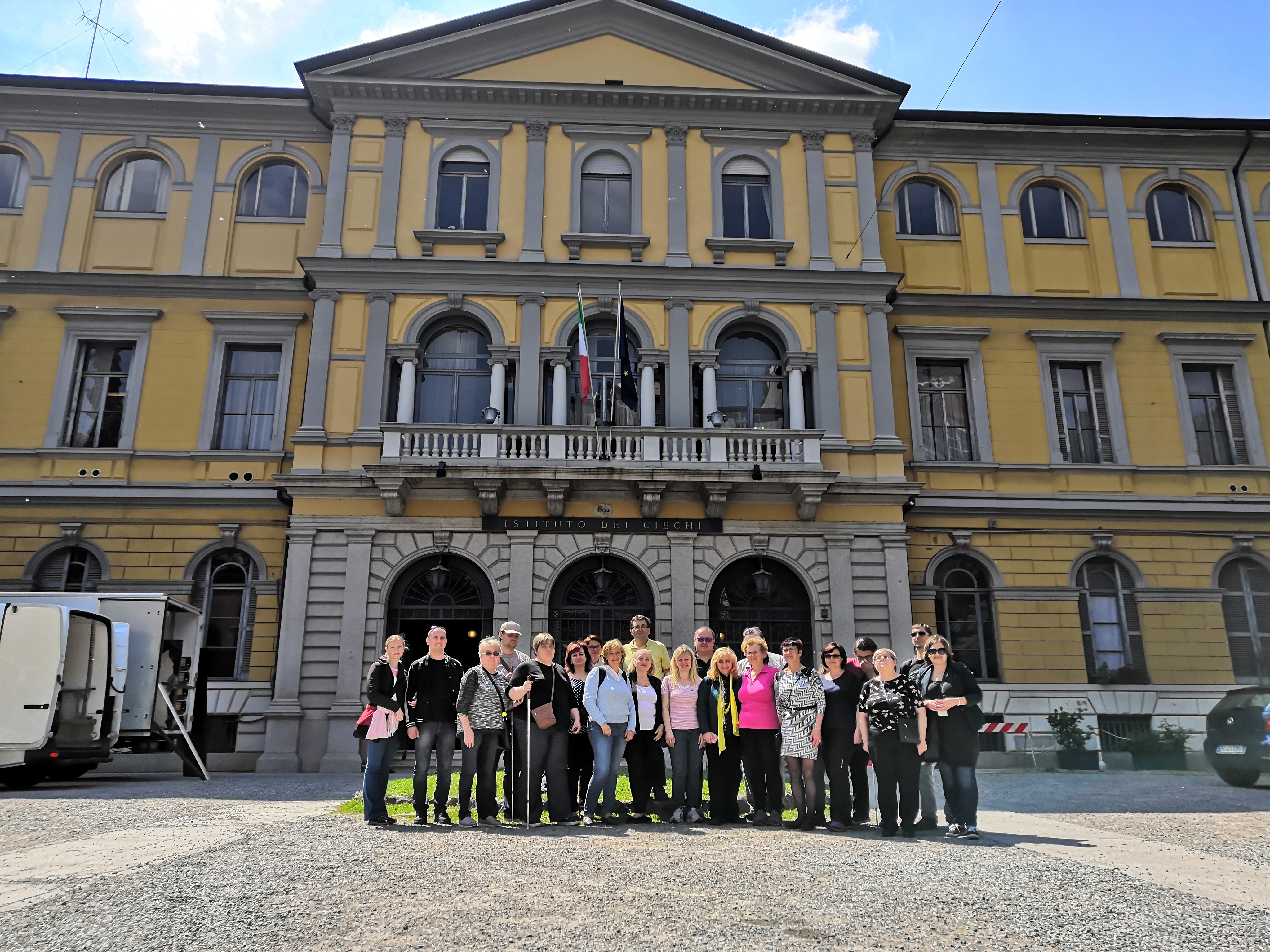 V brzkém pátečním ránu 10.5.2019 jsme na brněnském letišti absolvovali odbavení, které bylo spojeno s pomocí letištního personálu zajistit nám nadstandardní podmínky při usazení v letadle. Celkem 10 zrakově postižených členů Aktivklubu, 10 průvodců a prcek Jirka se vzduchem přeneslo na milánské letiště, kde nás přivítalo teplé jarní počasíčko. Autobus nás převezl k milánskému metru a ještě dopoledne jsme se dostali do pěkného hotelu Parma. Po rychlém ubytování jsme klusali do milánského Unione Italiana dei Ciechi e degli Ipovedenti, kde jsme měli sjednánu prohlídku tohoto institutu, který poskytuje komplexní péči zrakově postiženým žákům a studentům z celé střední Itálie. Velmi vlídné přijetí, prohlídka institutu v jeho nádherných palácových prostorách a diskuse o péči o zrakově postižené Italy spojená s příjemným občerstvením v nás zanechala hluboký zážitek. Večer jsme se po návratu rozprchli do krásných zahrádek restaurací a pošmákli si na skvělé večeři spojené leckdy s ochutnávkou výborných italských vín.