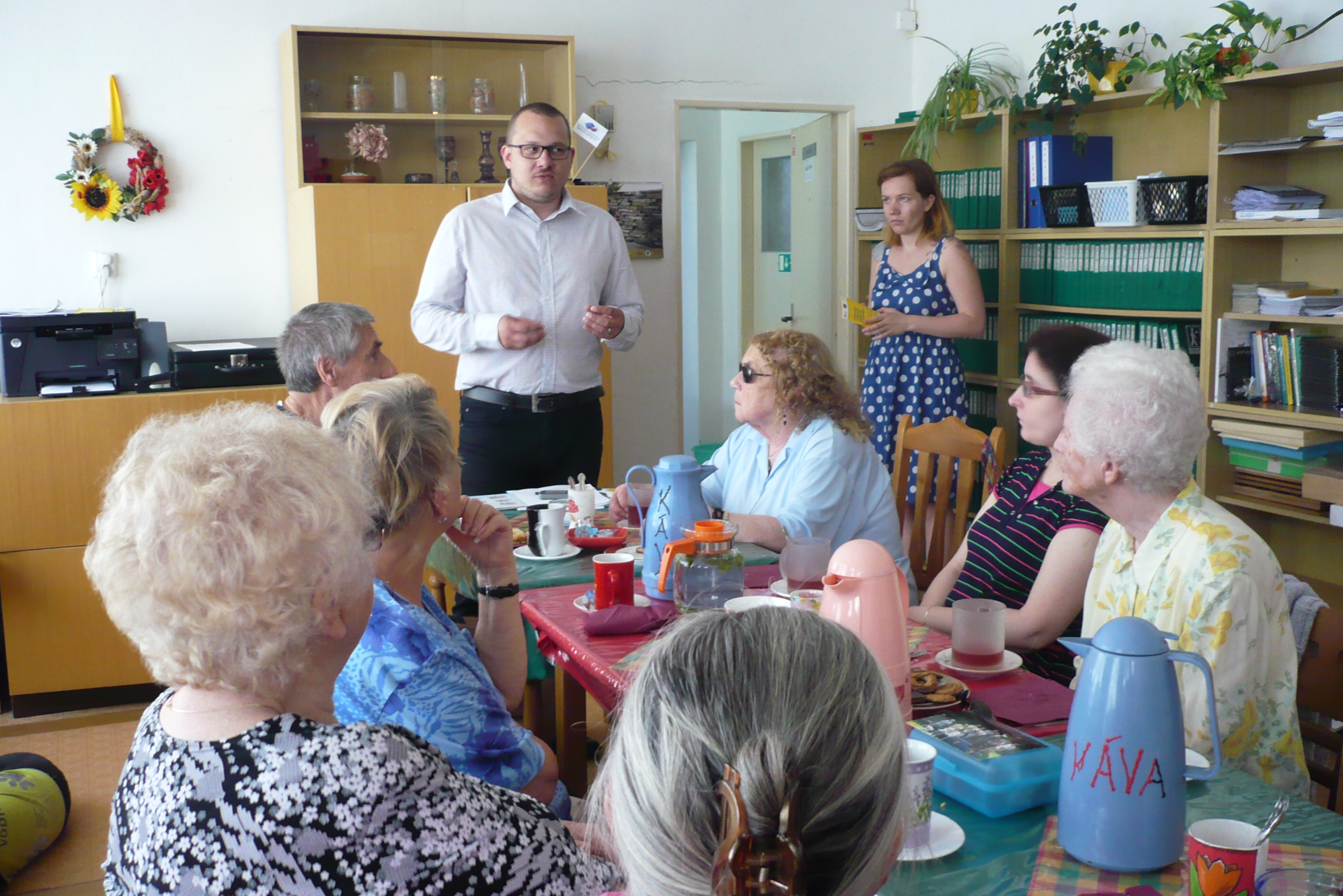 Pozvali jsme do klubovny na středu 8.6.2016 „anděla strážného“ a přišel pan Adam Sviták, který nám vysvětlil, jak to s andělem strážným vlastně je. Jedná se totiž o sociální službu tísňové péče pro seniory, zdravotně postižené a osoby se zdravotními komplikacemi žijící v domácím prostředí. Klient má u sebe mobilní zařízení s červeným SOS tlačítkem a po stisknutí se spojí s operátorkou, která řeší klientovu krizovou situaci. Pan Sviták předvedl zařízení a odpověděl na všechny otázky položené našimi členy. Vysvětlil také, jak mají s každým klientem nastaven individuální plán péče. Dispečeři například připomenou léky či zajistí výjezdy ke klientovi apod. Pokud chcete, aby váš blízký prožil svůj život důstojně v jeho domácím prostředí, kontaktujte anděla strážného. Někteří naši členové zájem projevili.