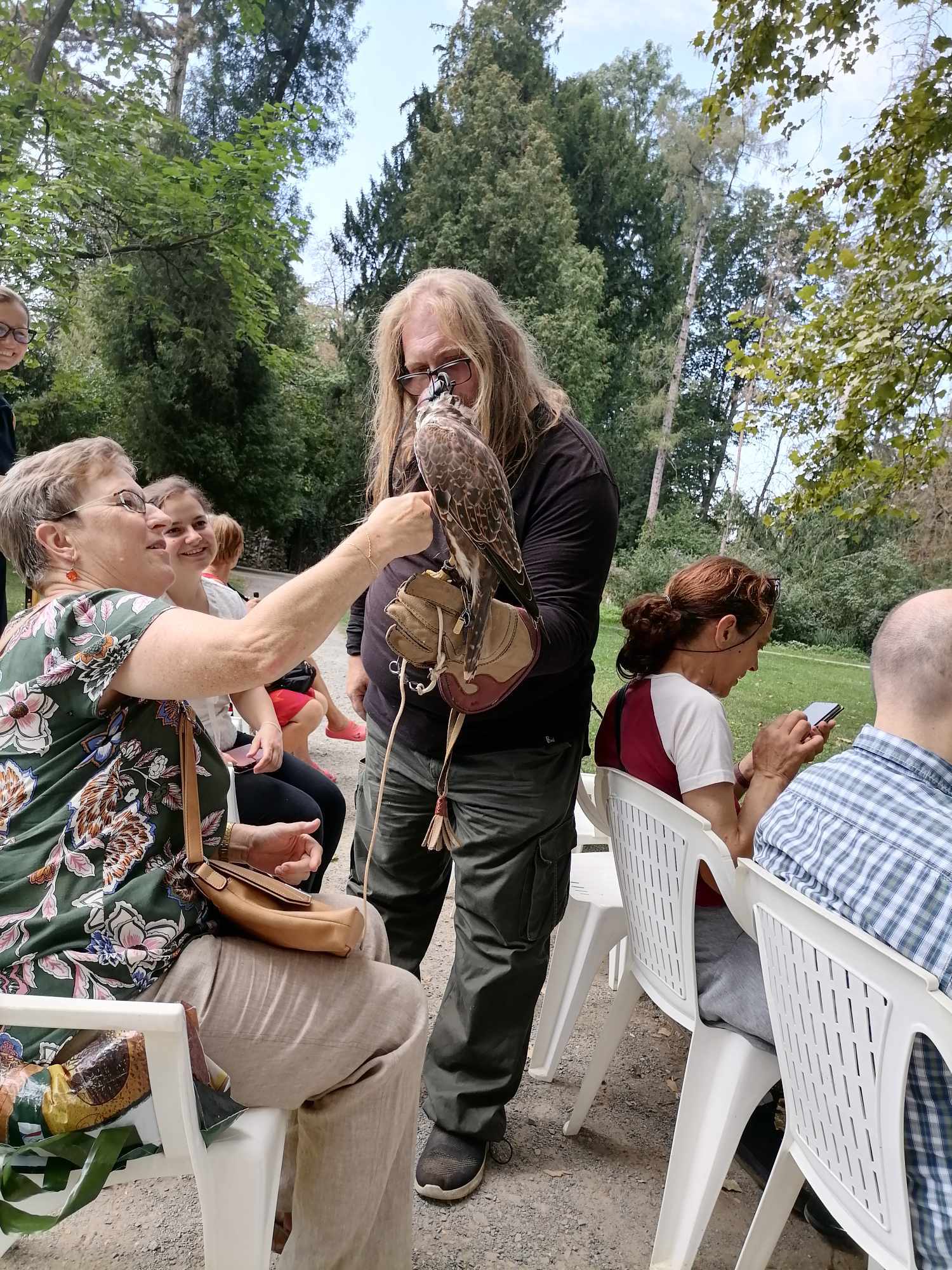 Pro všechny přítomné byla nevšední zkušeností možnost seznámit se blíže se svěřenci pana sokolníka prostřednictvím hmatu.