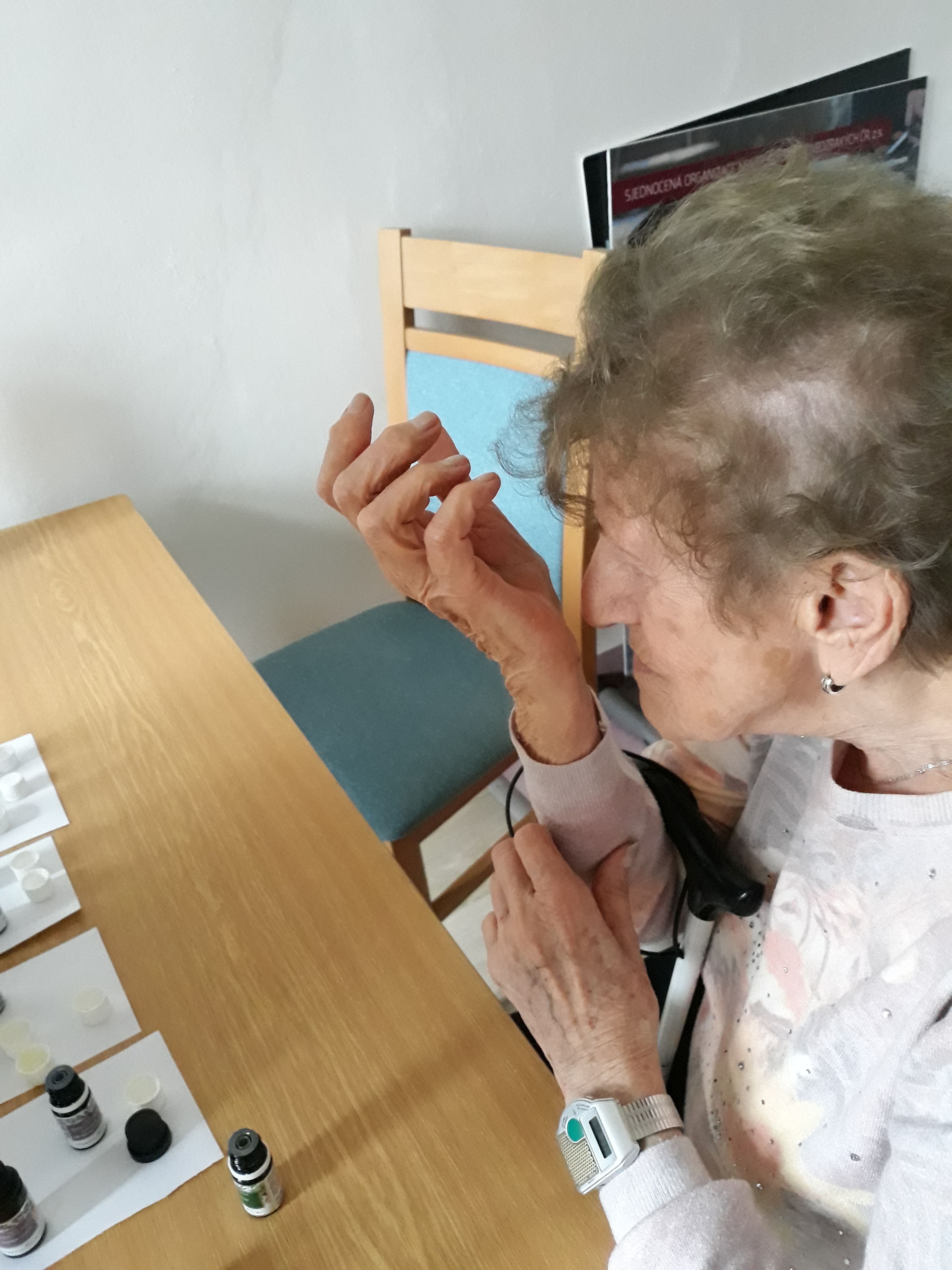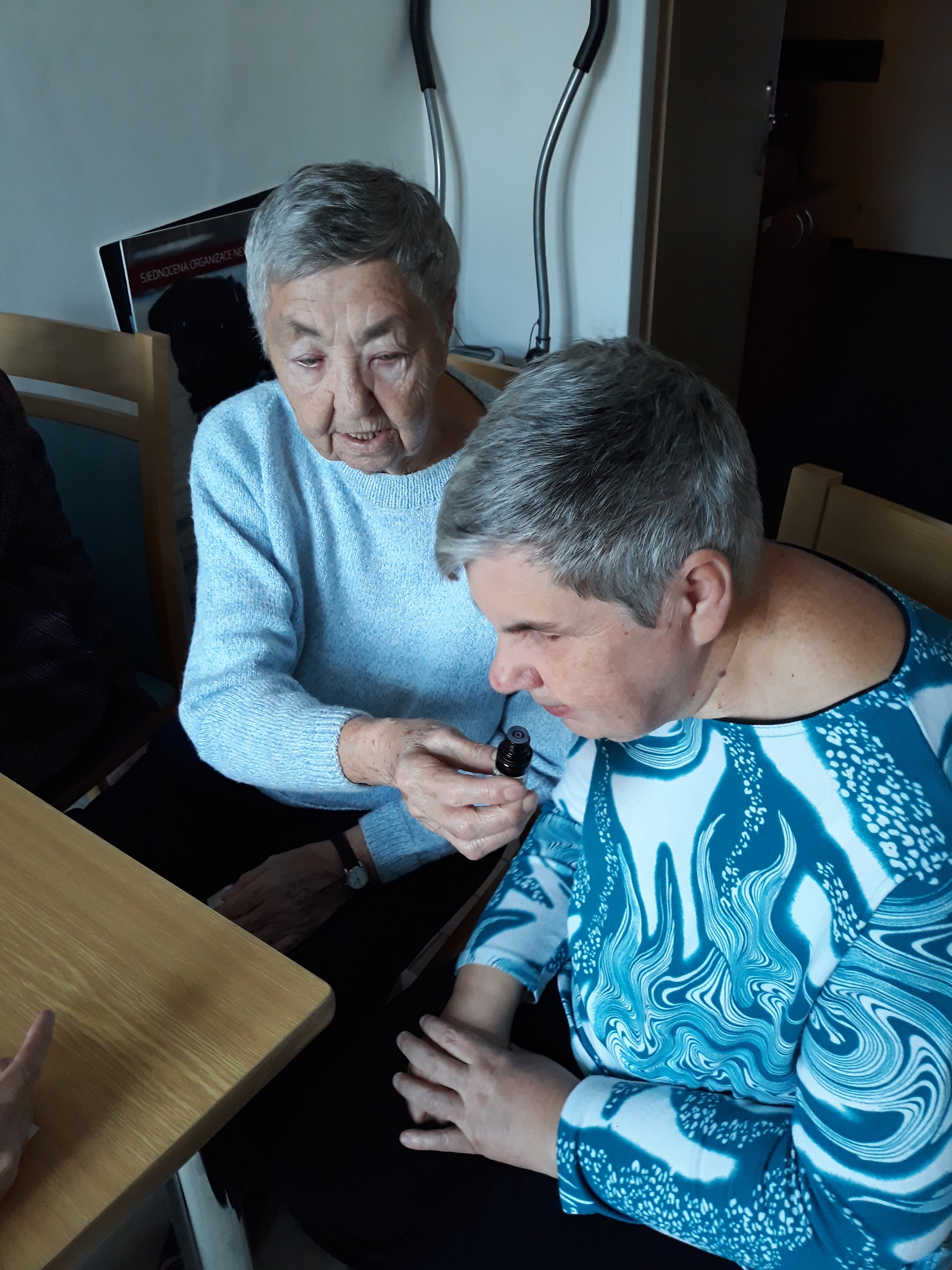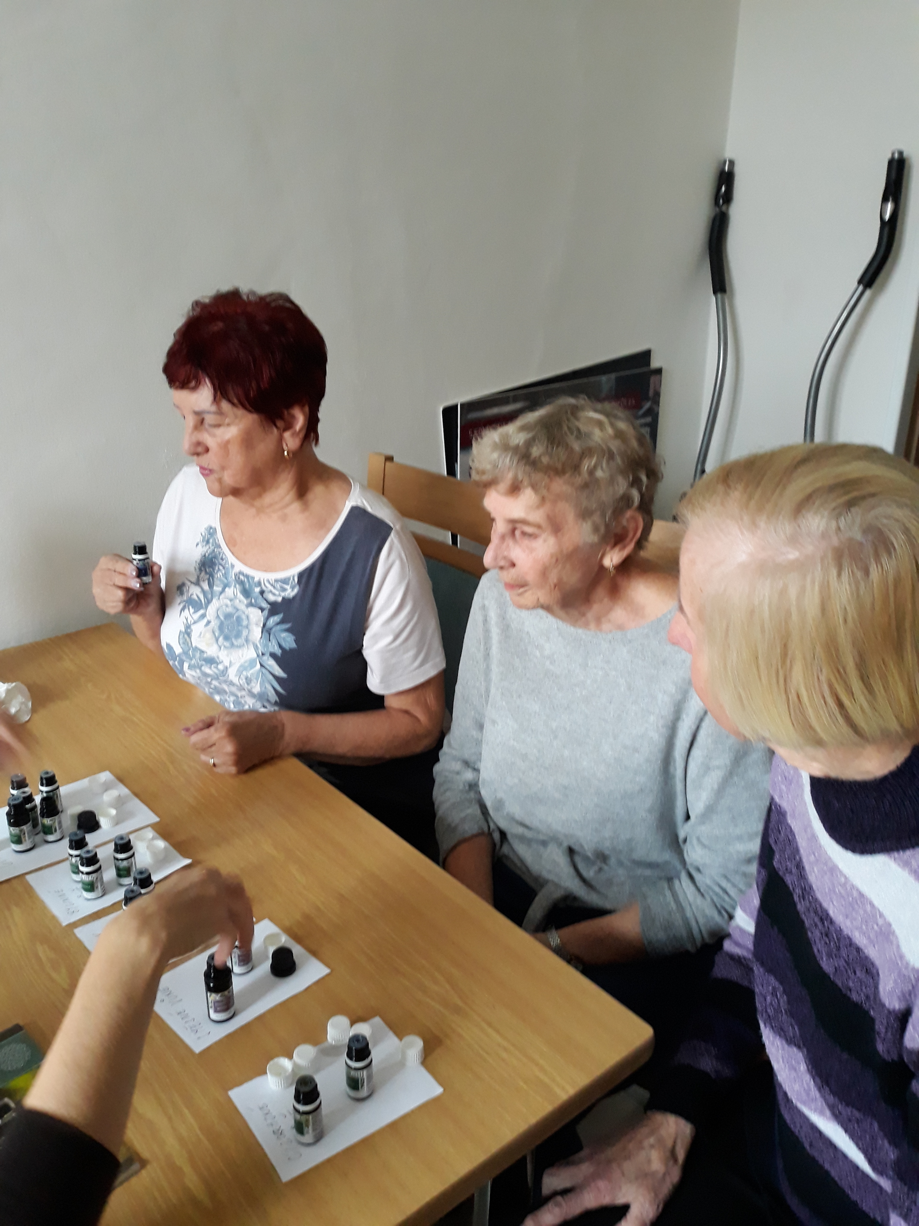 Koncem října a ve středu 13.11. proběhly v klubovně naší odbočky přednášky pro uživatele na téma aromaterapie. První přednáška poskytla základní informace o aromaterapii, které olejíčky se používají a jejich vliv na různé zdravotní potíže. Druhá přednáška již byla s praktickými ukázkami a zde si uživatele měli možnost jednak očichat éterické oleje a poté si dle vlastního výběru namíchat s pomocí přednášející parfém.