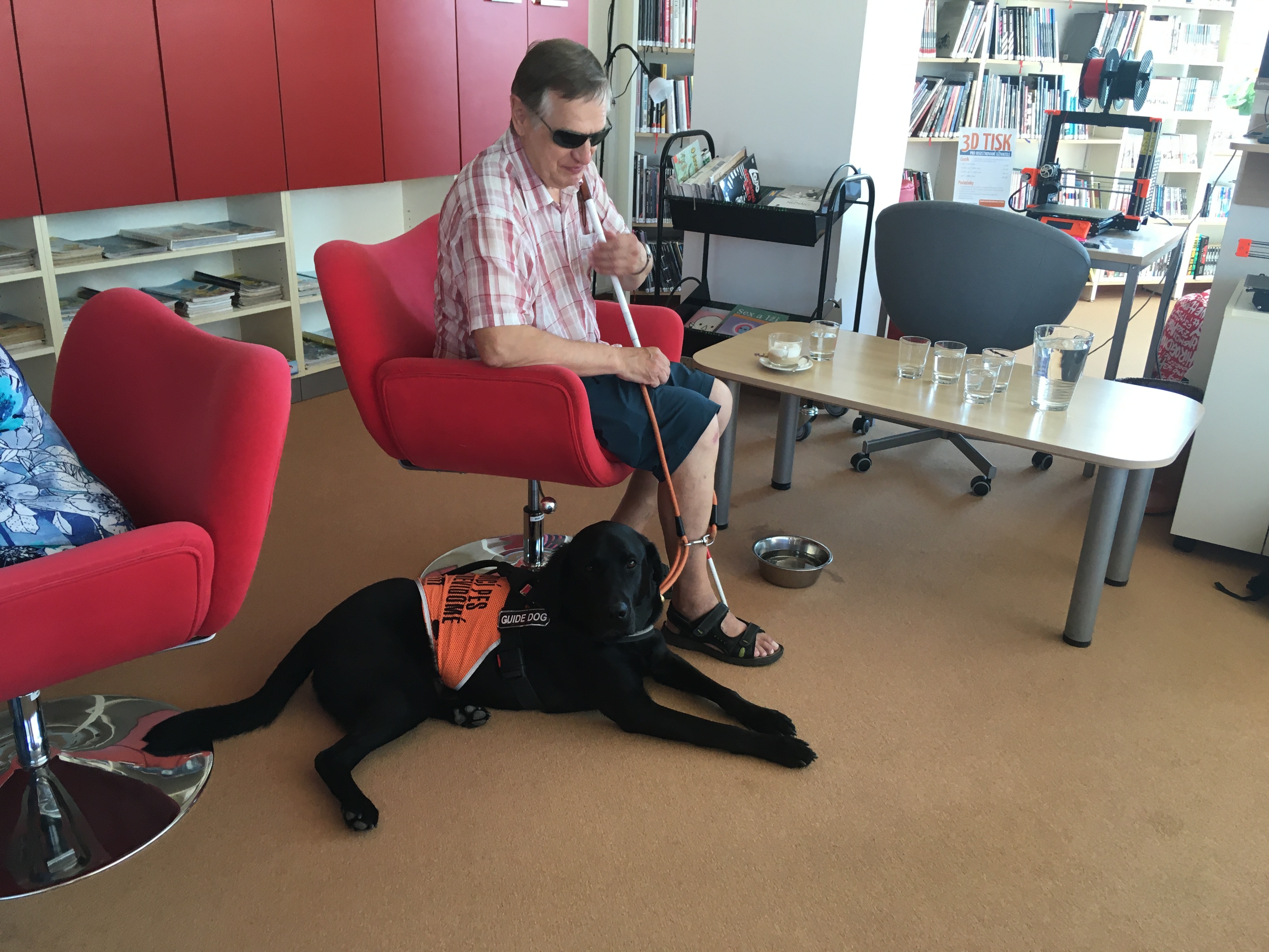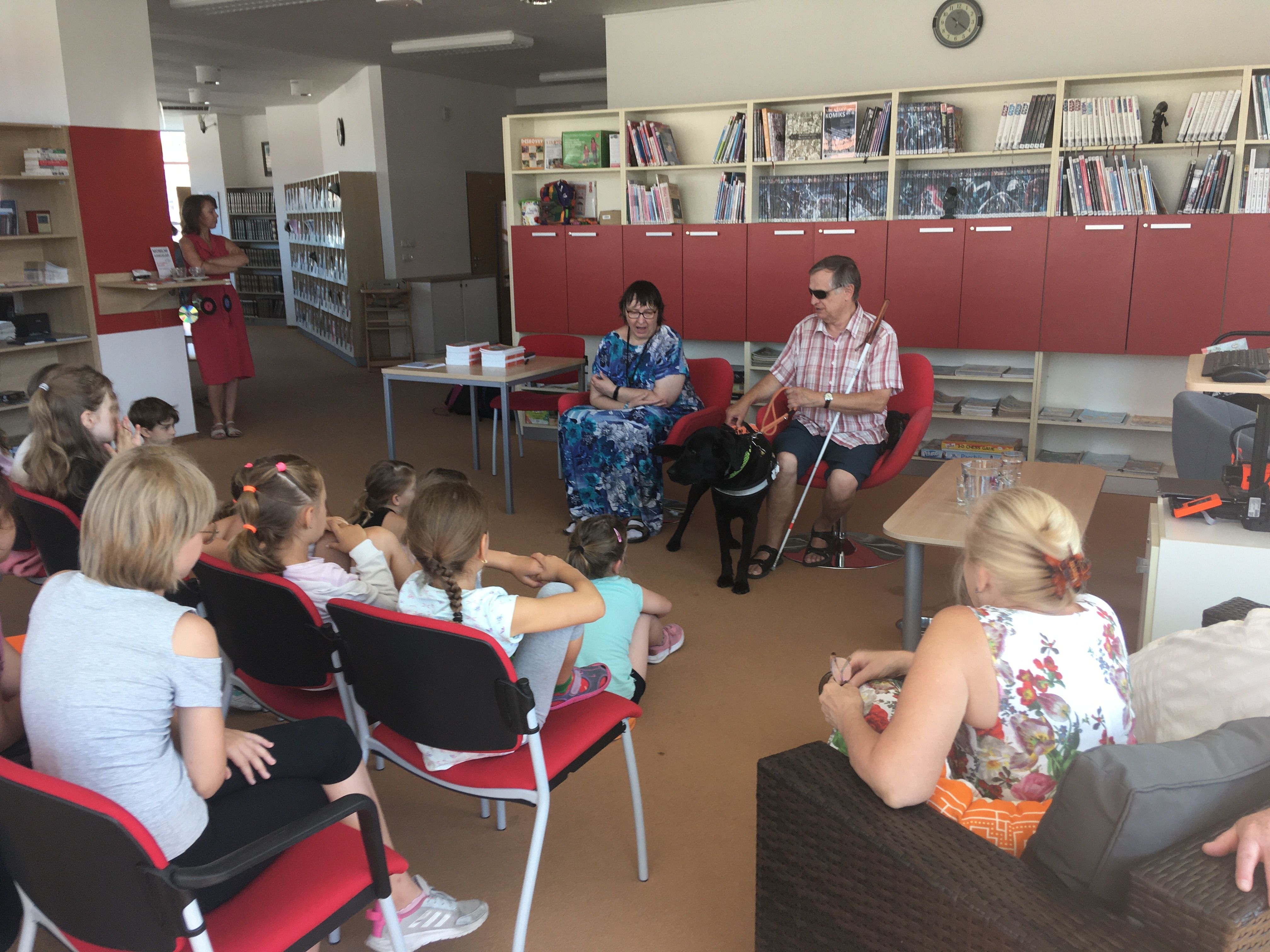 Horko, vedro a výheň. Chlupatí živí pomocníci s vyplazenými jazýčky zvědavě pozorovali hemžící se děti z příměstského tábora. K-klub vsetínské knihovny přivítal vodícího psa Cedrika se svým pánem Vladimírem Krajíčkem a prakticky nevidomou autorku knihy Nabu, Nelsie a škola pro superpsy Stanislavou Krajíčkovou. 34 dětí pozorně naslouchalo vyprávění o práci vodícího psa, zatímco Cedrik nehnutě ležel u nohou svého pána. Jakmile program dospěl do bodu předvedení pejska, Cedrik vyskočil a cinkot rolničky upozornil na jeho pohyb. Vzorně předváděl své dovednosti na povel svého pána, přičemž občas neodolal přičichnout k plyšovým hračkám. Děti se zvědavě dotazovaly na zajímavosti ze života vodícího psa a jejich štěbetání bylo přerušeno čtenou ukázkou kapitoly ze zmíněné knihy. Na závěr se kolem pejska napřahovaly dětské ručičky ve snaze zachytit a pohladit jeho jemnou srst.