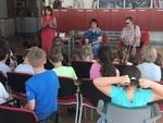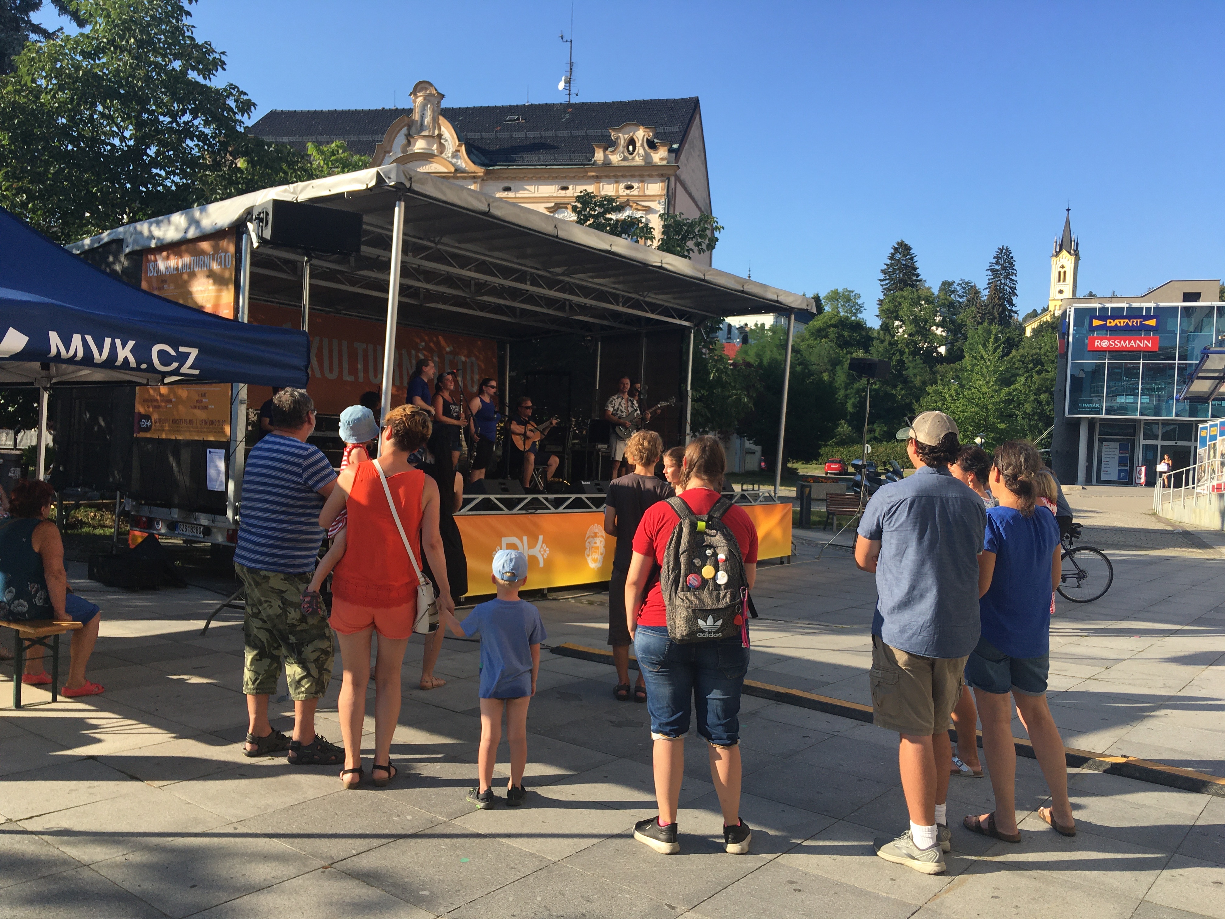 Skupina nevidomých hudebníků a zpěváků Kyklop band dorazila svým trambusem a po nezbytném doplnění tekutin na podiu hrála a zpívala známé populární melodie a písničky. Tleskání posluchačů se ozývalo rovněž z nedalekých zahrádek restaurací a publikum se také usadilo na schodech knihovny. Teploty přesahující 30 stupňů celsia se staly limitující pro další setrvání na rozehřátém náměstí, avšak potlesk a veselé výkřiky neustále povzbuzovaly hudebníky a zpěváky k dalšímu výkonu.