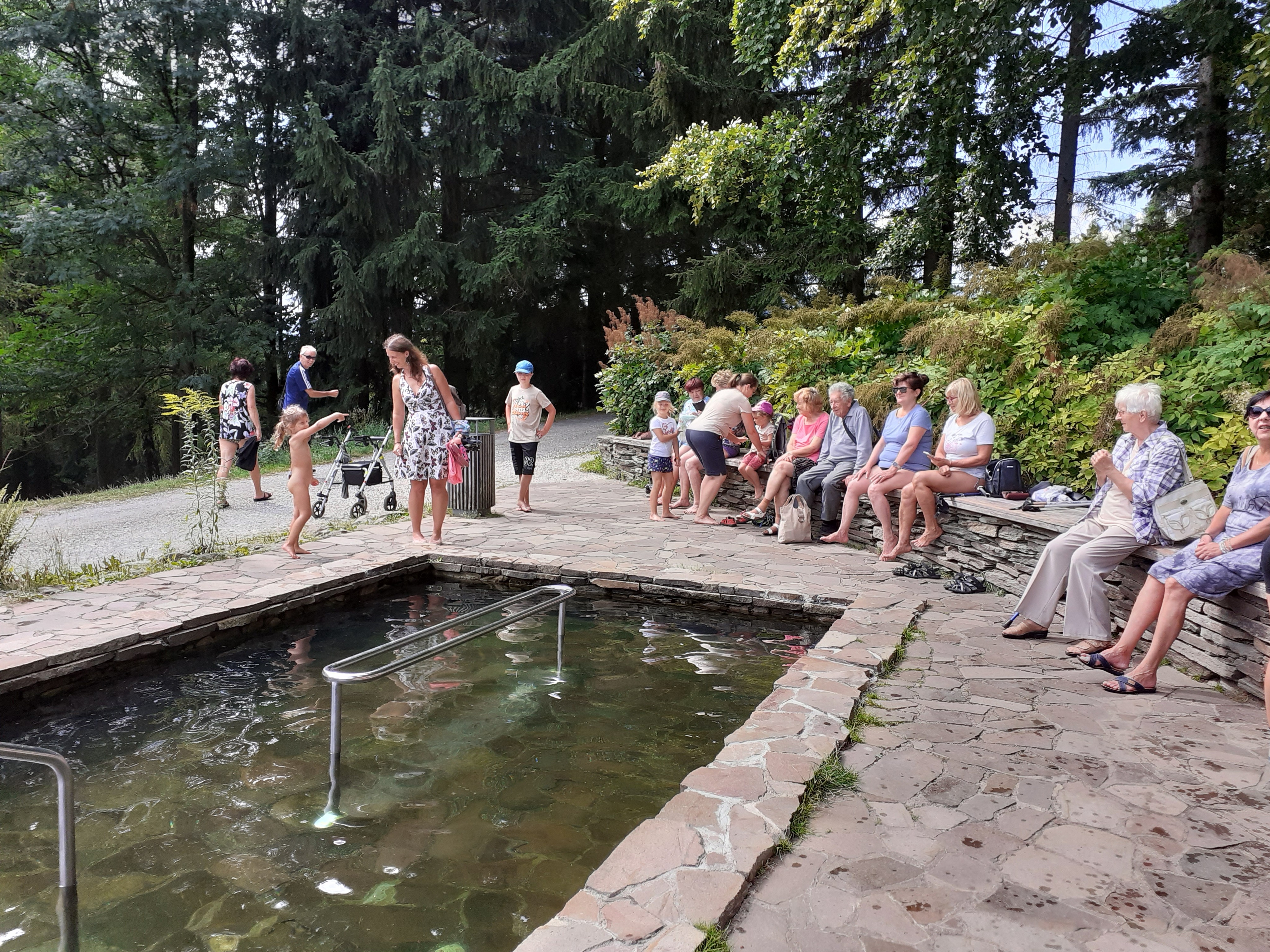 Je čtvrtek 11. srpna a den nás vítá krásným slunečným a teplým počasím. Setkáváme se v autobuse do lázní. Po přivítání následuje vzájemné představení a pohoštění. Vydáváme se vstříc jednotlivým atrakcím balneoparku a zastavujeme se ochutnat vodu u Slovanského pramene. Scházíme jižním svahem kolem „Cesty života“ a zakončujeme v restauraci, protože nám pořádně vyhládlo. Děkujeme za mile strávený den ve společnosti výletníků ze Šumperka.