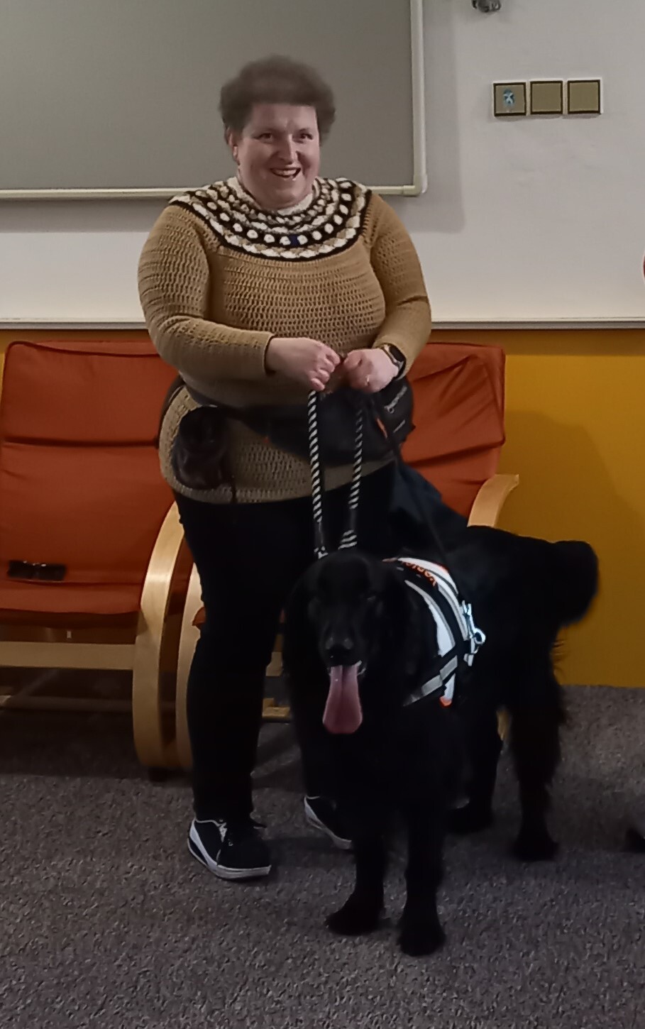 Přijali jsme pozvání a v úterý 13. 2. jsme se s kolegyní ze šumperské odbočky, paní Petrou Voglovou a jejím vodicím psem, černým flatem Frisbym, vydali do žulovského výchovného ústavu. Od 15 hodin si studenti mohli vyzkoušet aktivity bez kontroly zraku, v 16 h. následovala beseda s Petrou o životě s vodicím psem. Frisby poslušně předvedl požadované povely. Velmi zaujaly historky ze života s vodicím psem a možnost pomazlit se s Frisbym.