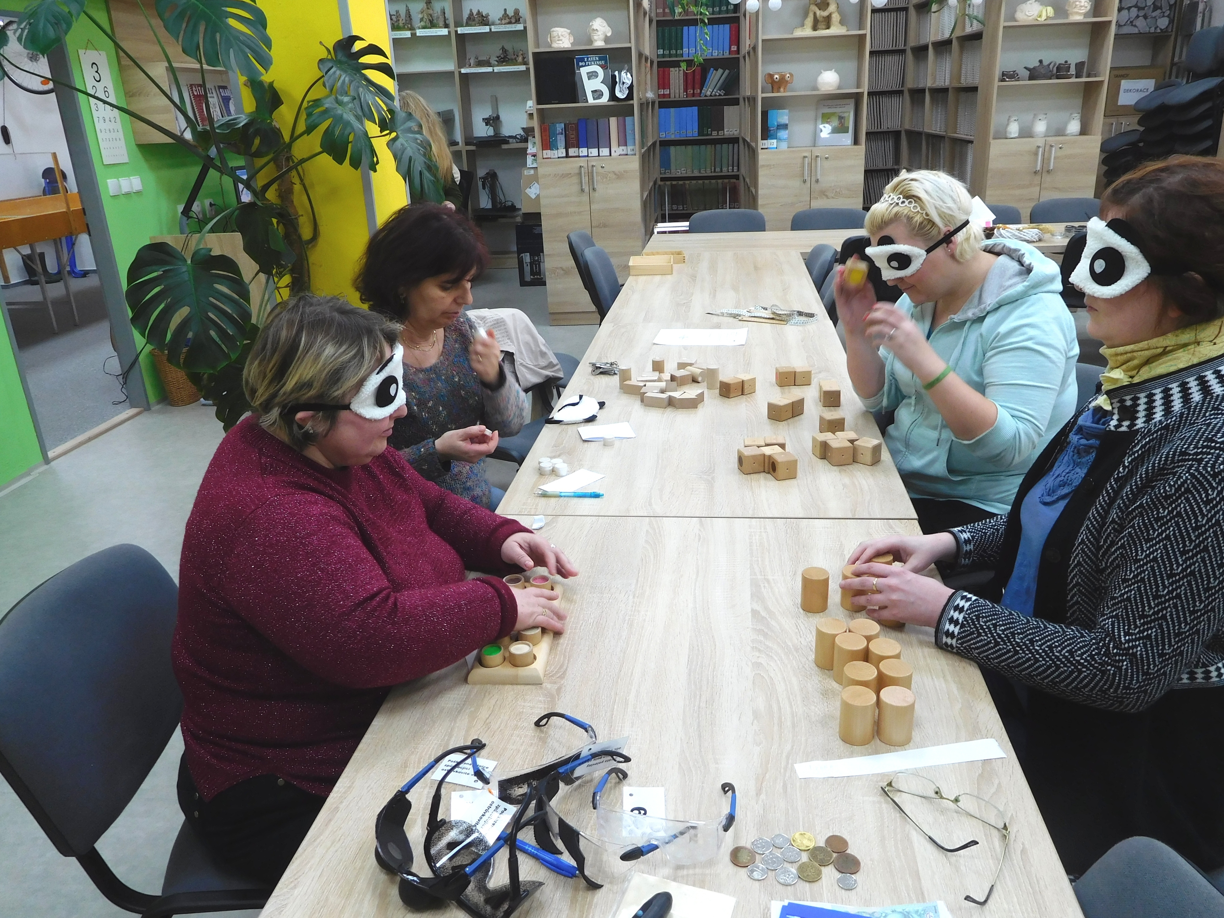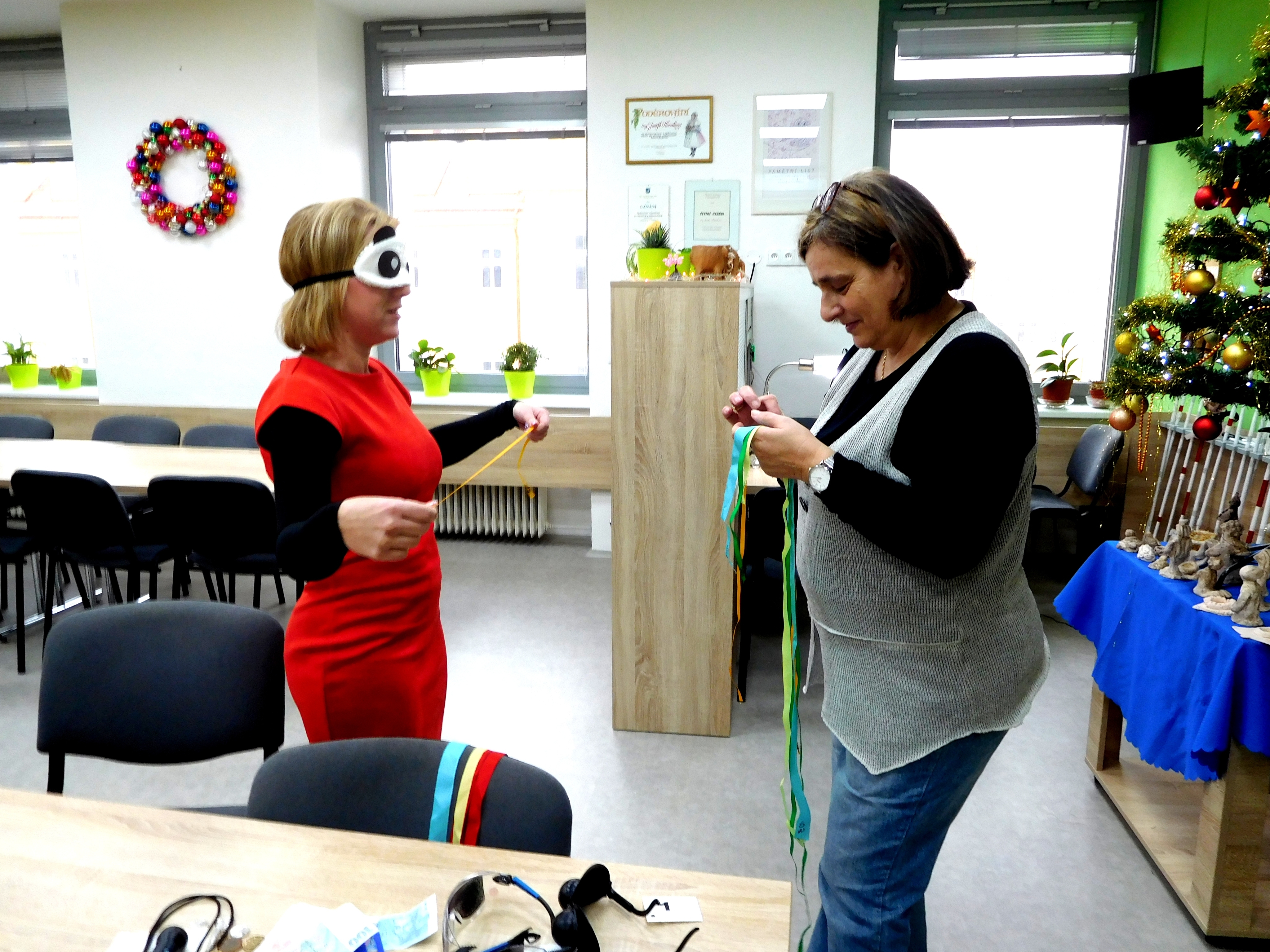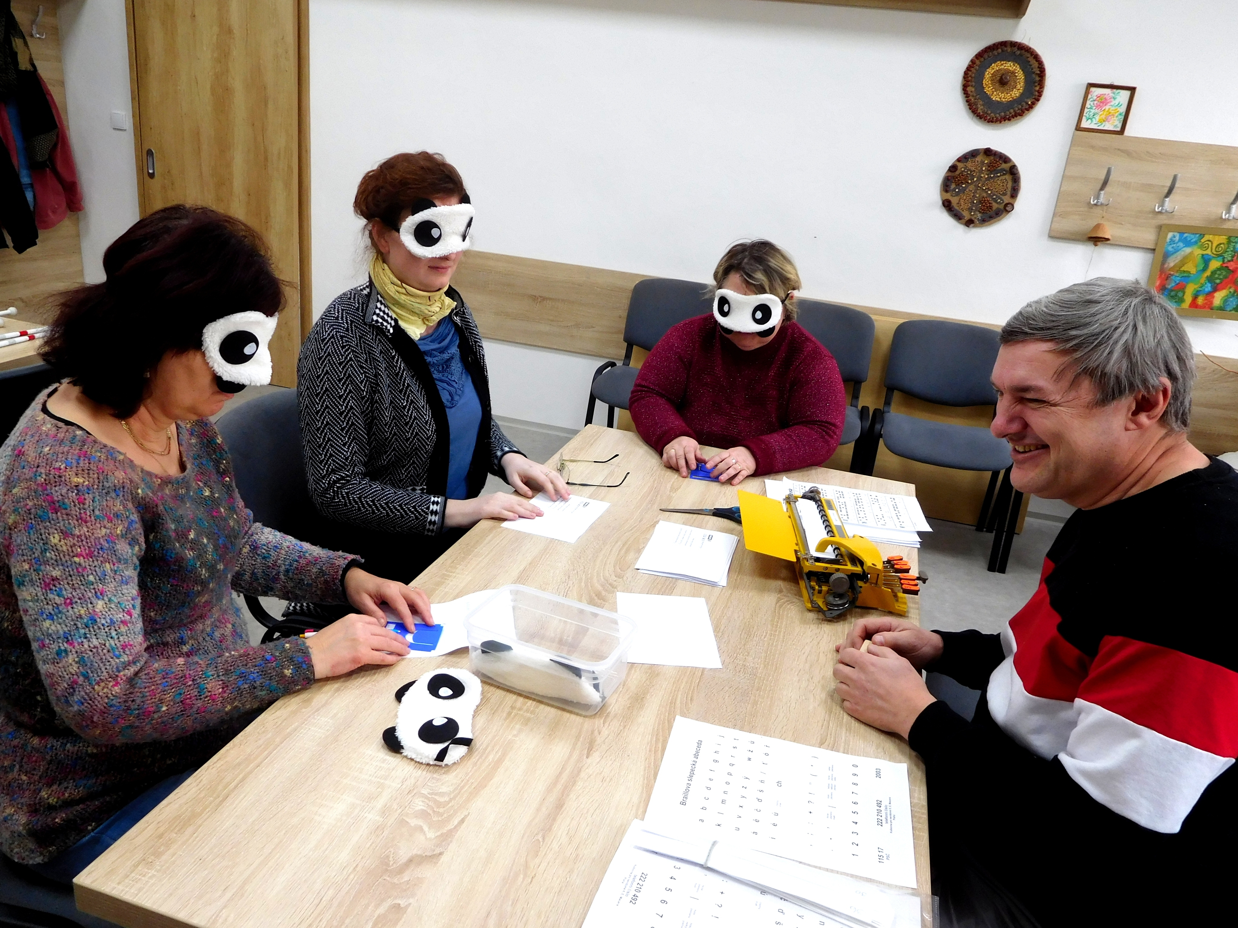 S děvčaty se denně potkáváme, známe se, vědí o nás mnohé, ale ještě neměly příležitost intimně poznat život spojený s tmou (pardón, byl tam i jeden muž :-)). Přichystali jsme pro ně mnoho aktivit, při kterých vnímali trochu jinak sluch, čich, hmat, chuť, různé odhady. Všechno si se zájmem vyzkoušeli, z mnoha věcí byli překvapeni, jak činnosti které vykonávají zcela automaticky v momentě, kdy se ocitnou ve tmě nabývají jiných rozměrů. Byť to byl pro ně černý den, vnesl mezi nás více světla a empatie...a o tom osvěty jsou :-)