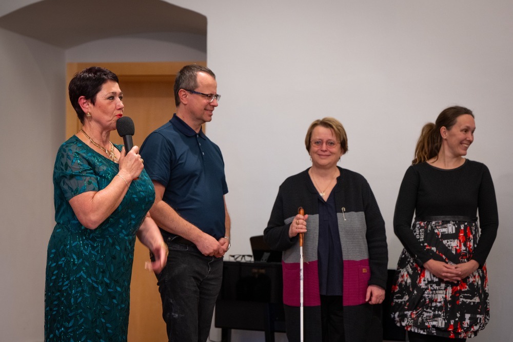 V letošním roce jsme navázali spolupráci s paní Hanzalovou, se kterou se potkáte ještě během festivalu TyfloArt. A protože se jedná o osobu se srdcem na dlani, přišla z její strany cca před dvěma měsíci nabídka, že by koncert HaMaVe mohl být pojat, jako benefiční, ve prospěch TyfloArtu. Slovo dalo slovo a dne 16. dubna 2024 jsme v pěti lidech vyrazili do Pacova. Zde jsme vstoupili do zámku a uslyšeli (někteří i uviděli) něco nevídaného. Zmíněná trojice – Hana Žvachtová, Martina Pechová a Věra Hanzalová, nabídli posluchači poezii, zpěv a klavírní hudbu. Motivy, jako radost, láska, soucit a další se dotkly našich srdcí a nejen posluchač ukápl i nějakou tu slzu. Po hodince a čtvrt jsme se loučili, a protože, jak jsem již poznamenal výše, jednalo se o akci benefiční, odjížděli jsme nejen s duchovními zážitky, ale též s částkou Kč 3.415,-. Velmi proto tomuto triu děkujeme a budeme se těšit na další spolupráci. A vy, co jste neměli možnost se tohoto koncertu zúčastnit, máte štěstí, protože další koncert se uskuteční v Chýnově dne 18. května 2024 v 18:00 hod. ‚A navíc, i tento koncert je věnovaný benefici pro naši odbočku. Nechme se tedy překvapit, zda Chýnovští otevřou nejen svá srdce, ale i peněženky.