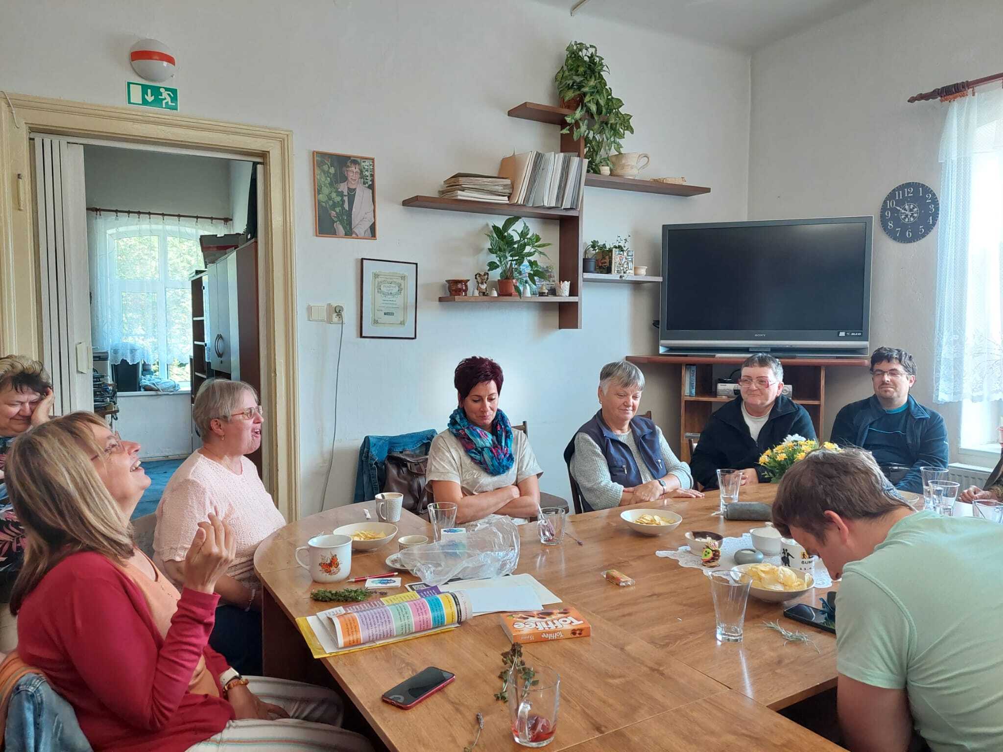 Po přestávce dostal každý z nás do ruky malou rostlinku a měli jsme možnost trošku „provětrat“ a procvičit naše smysly. Bylo to příjemné relaxační cvičení, když jsme se mohli soustředit jen na to, jak rostlina voní, hmatem zkoumat její lístky, klidně ji i ochutnat a kdo měl možnost, mohl se soustředit i na zrakový vjem. Ukázali jsme si, že i takhle zdánlivě jednoduché zkoumání rostlinky všemi dostupnými smysly nás může uklidnit a udělat nám radost.