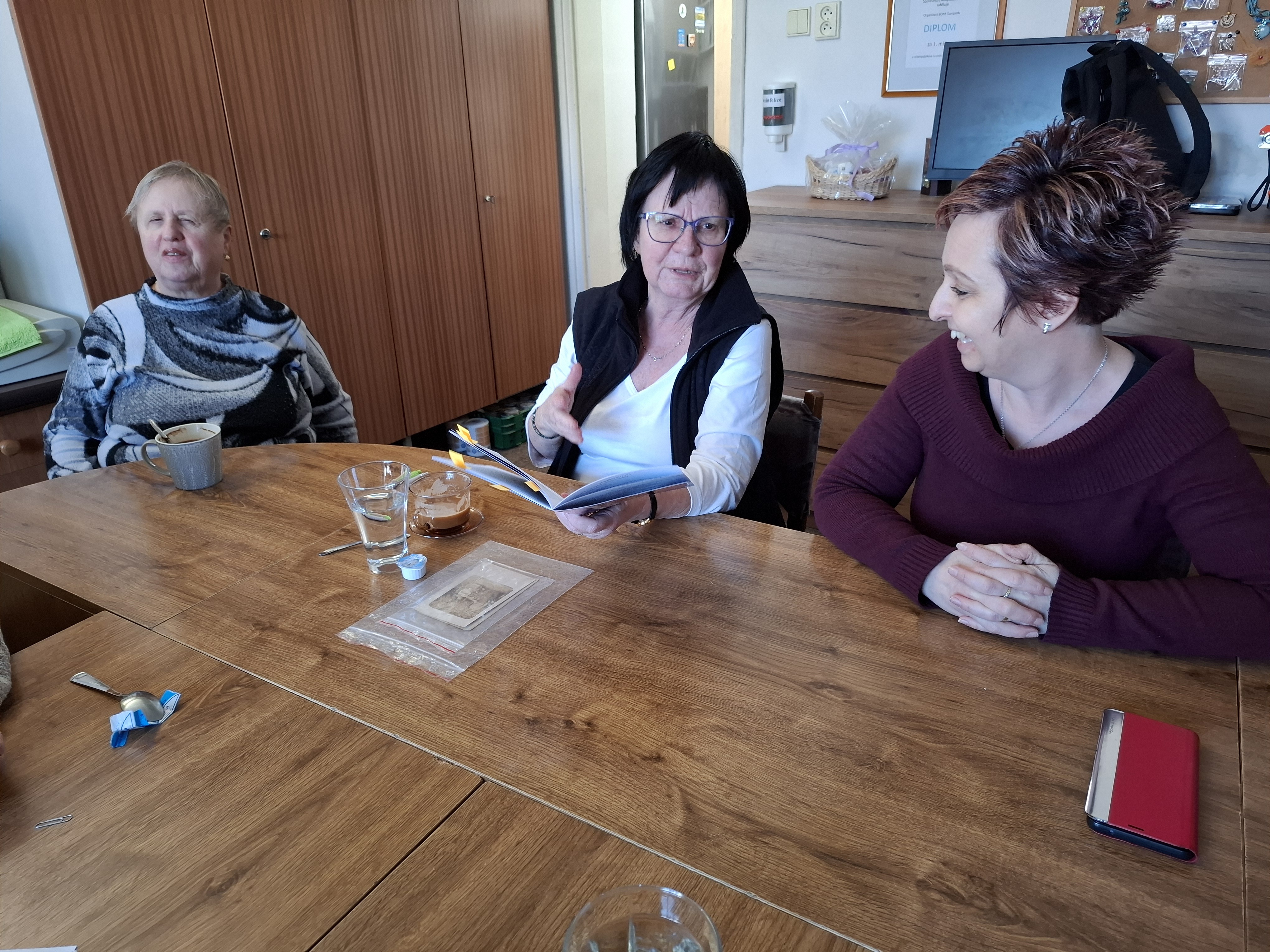 Po společném čtení následovala tvořivá část. Účastníci si mohli vybrat starý obrázek nebo vlastní oblíbenou fotografii a zavzpomínat na lidi, události či příběhy, které se k nim vážou. Atmosféra byla velmi osobní a přátelská – každý měl možnost sdílet, co ho oslovilo, pobavilo nebo dojalo.