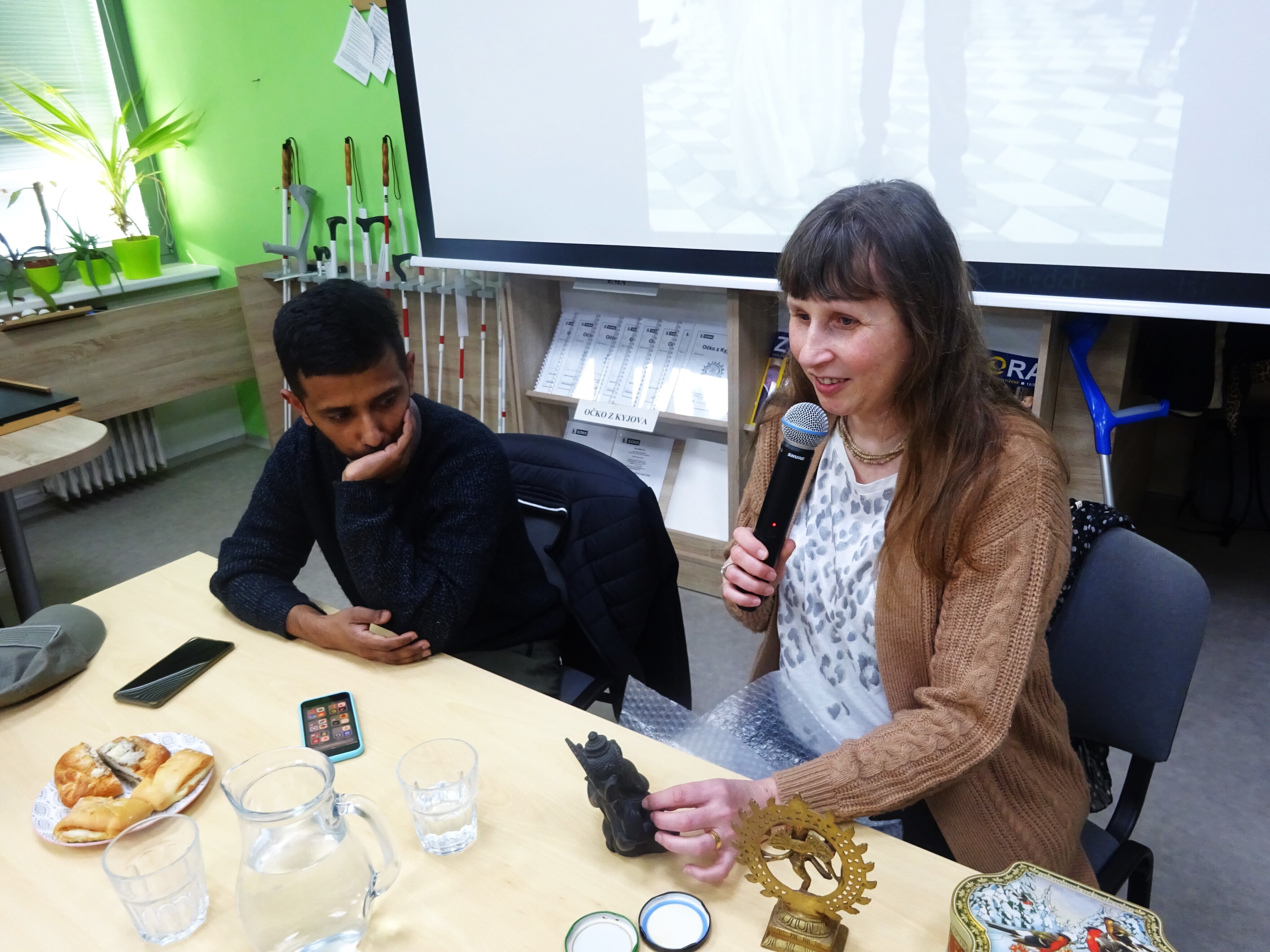 Nevidomá Daniela Thampy přijela mezi nás se svým manželem, který pochází z Indie. Takže téma besedy bylo jasné - povídání o tom, jak nevidomá poznávala Indii z trochu jiné strany, než běžní turisté. Nechyběly ani různé hmatové, či čichové ukázky.