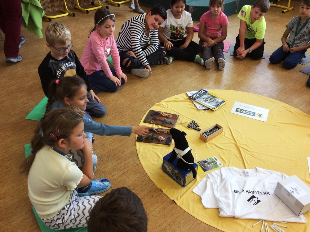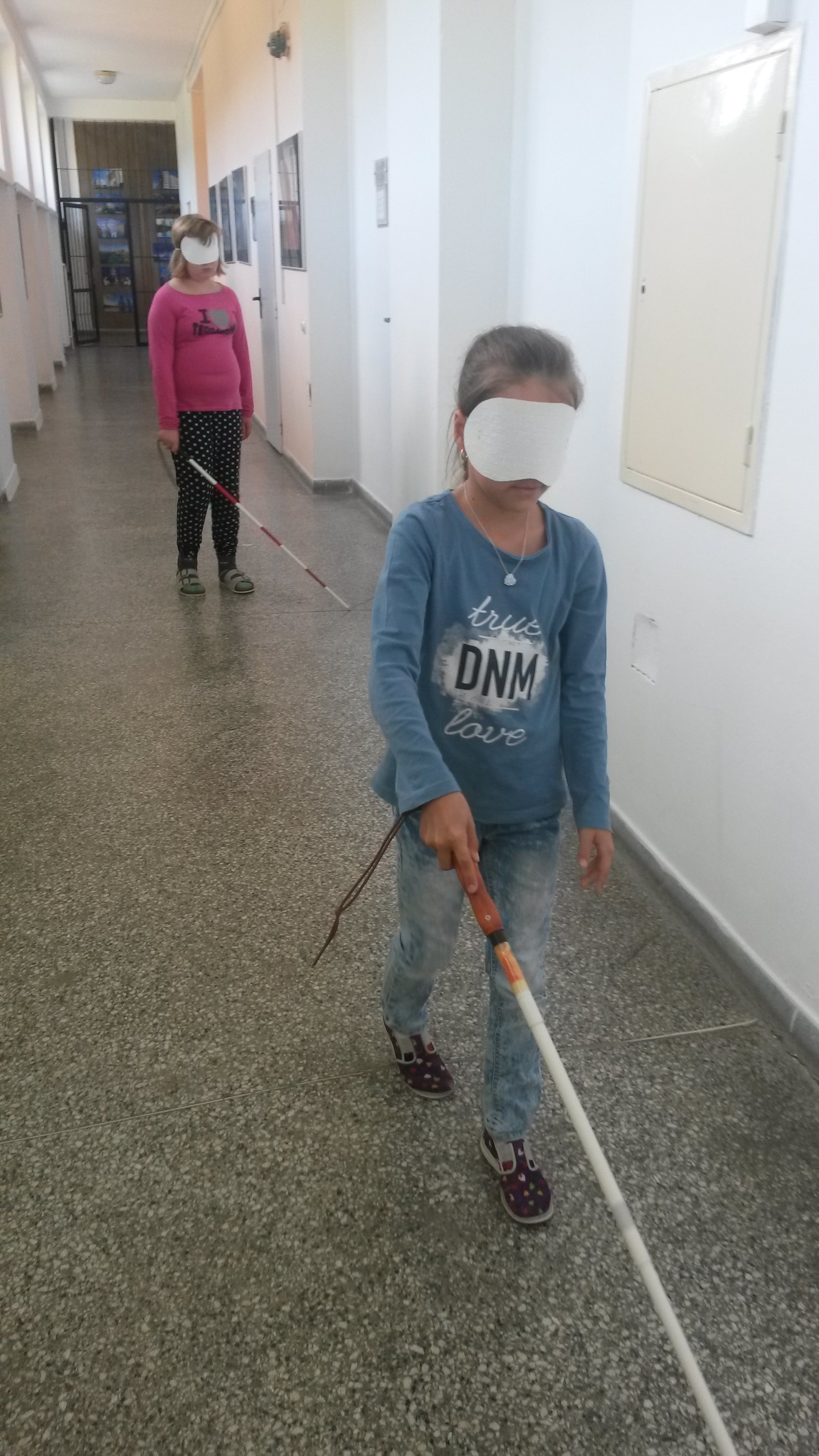 V úvodu jsme se všichni vzájemně představili. Prvním překvapením pro děti při poodhalení šátku byl piktogram nevidomého. Všeobecně jsme si řekli, kteří lidé spadají do pojmu „zrakově postižený“. V další části jsme si povídali o tom, co zrakově postižení mohou a nemohou ve svém životě dělat (děti spontánně napadalo mnoho zajímavých věcí) a kdo jim v jejich životě může podat pomocnou ruku. Děti byly seznámeny s obsahem činnosti SONS ČR, z. s. Dalším tématem byly pomůcky pro zrakově postižené, speciální časopisy, společenské hry a sportovní aktivity (showdown, zvuková střelba, jízda na dvoukole, apod.).