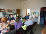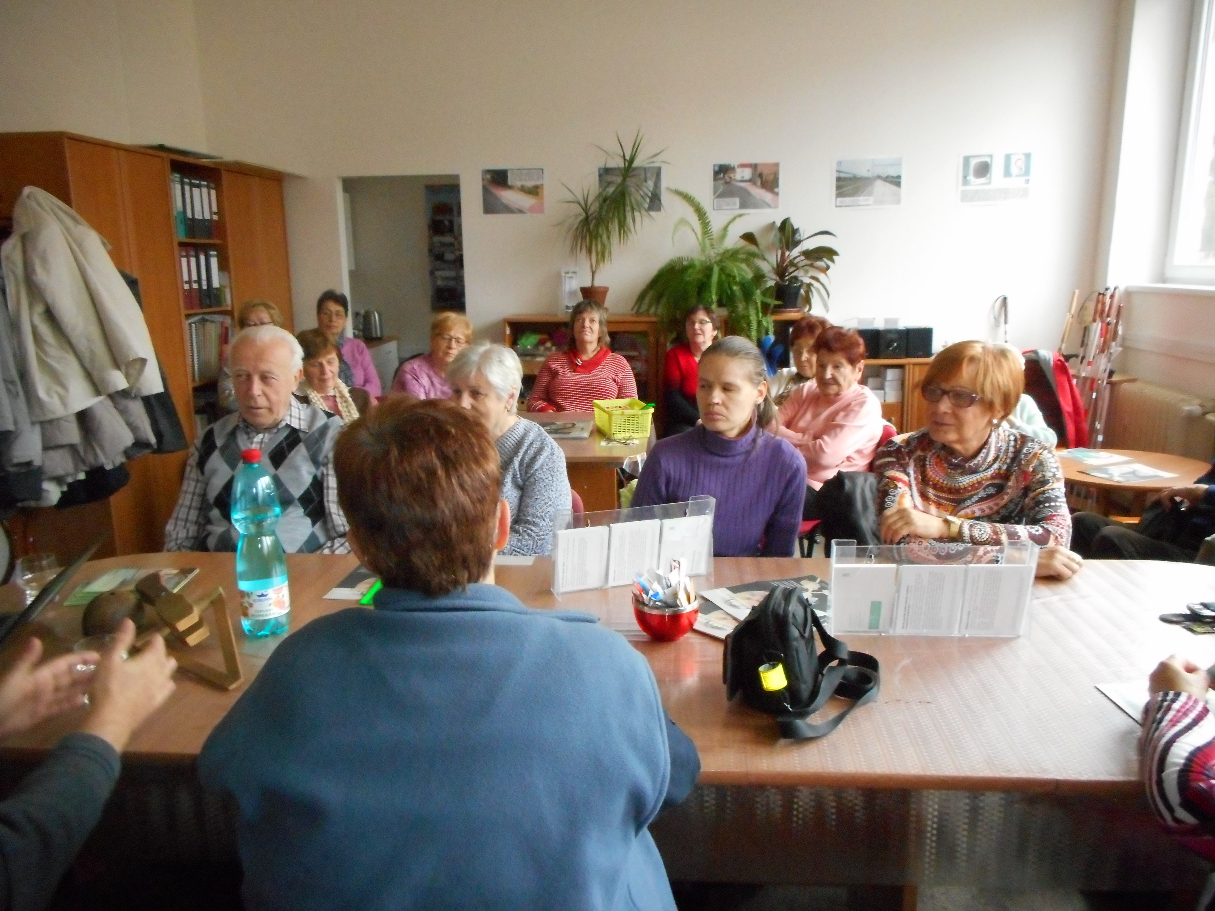 Beseda začala netradičně tím, že nás komentátoři obeznámili s problémy, které je potkávali. Některé humorné příběhy vyvolávaly v publiku salvy smíchu. Dále jsme se dozvěděli zajímavosti o pořadech Trefa nebo Toulky českou minulostí. Ke zpestření besedy přispěly i různé pomůcky, pomocí nichž se v rádiu vyrábějí rozmanité zvuky. Kdo správně určil zvuk, byl odměněn cédéčkem. Dostali jsme i propagační materiály a drobné suvenýry. Na závěr jsme oba hosty odměnili potleskem a popřáli jim hodně zdraví a zdaru v jejich práci.