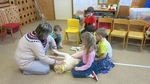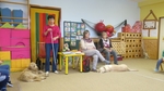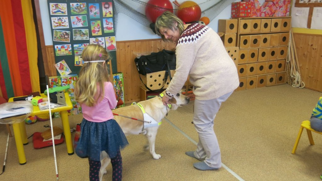 Stejně jako loni navštívily naši MŠ pro nevidomé paní Stejskalová Zdenka se svým vodicím psem Tejlou, paní Hádlerová Helena s pejskem Šarlotou a paní Jarmila Sedláková jako jejich doprovod z organizace SONS. Přinesly s sebou různé pomůcky, které nevidomým usnadňují každodenní život, jsou to např. mluvicí hodiny, elektronický ukazatel barev a knihy psané Braillovým písmem. A také různé hry - pexeso, míče s rolničkou, Člověče, nezlob se. Dále se děti seznámily s náročným výcvikem vodicích psů. Děti se na závěr dozvěděly, jak mají na ulici oslovovat nevidomé a jak jim případně pomoci. A hlavně byly poučeny, že oči jsou pro plnohodnotný život velice důležité a musíme si je chránit!