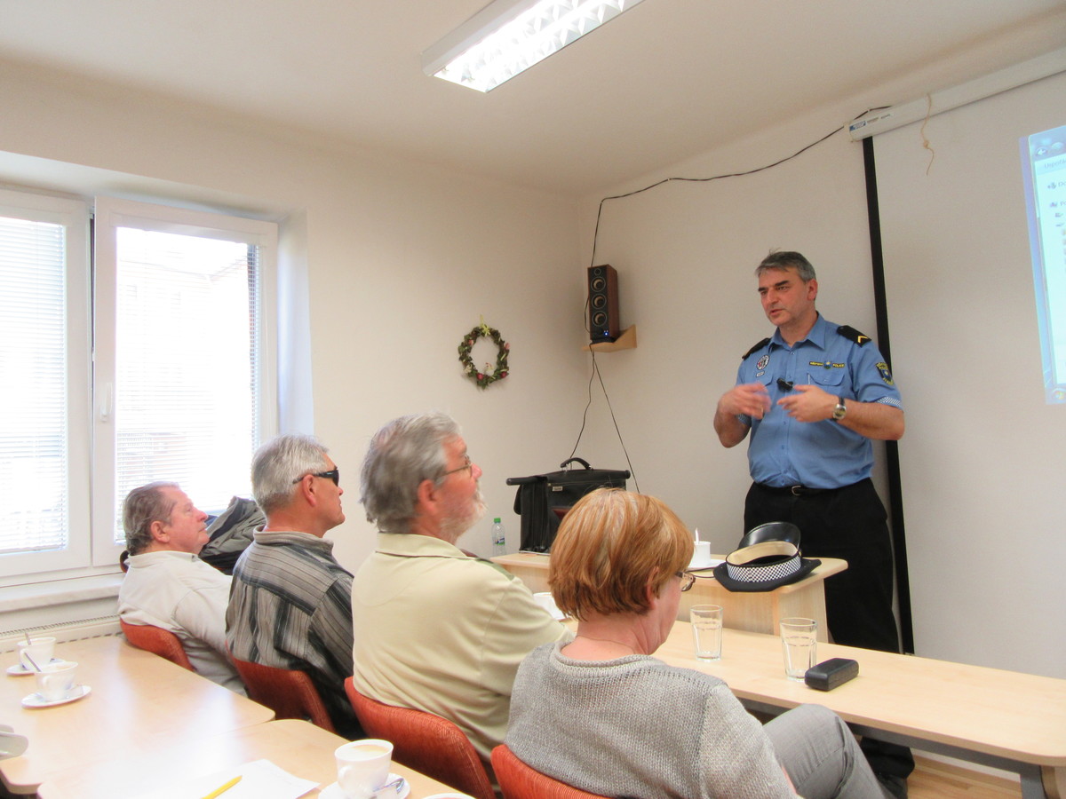 Pan strážmistr zaujal posluchače natolik, že přednáška, původně plánovaná na hodinu, se protáhla na hodiny dvě.