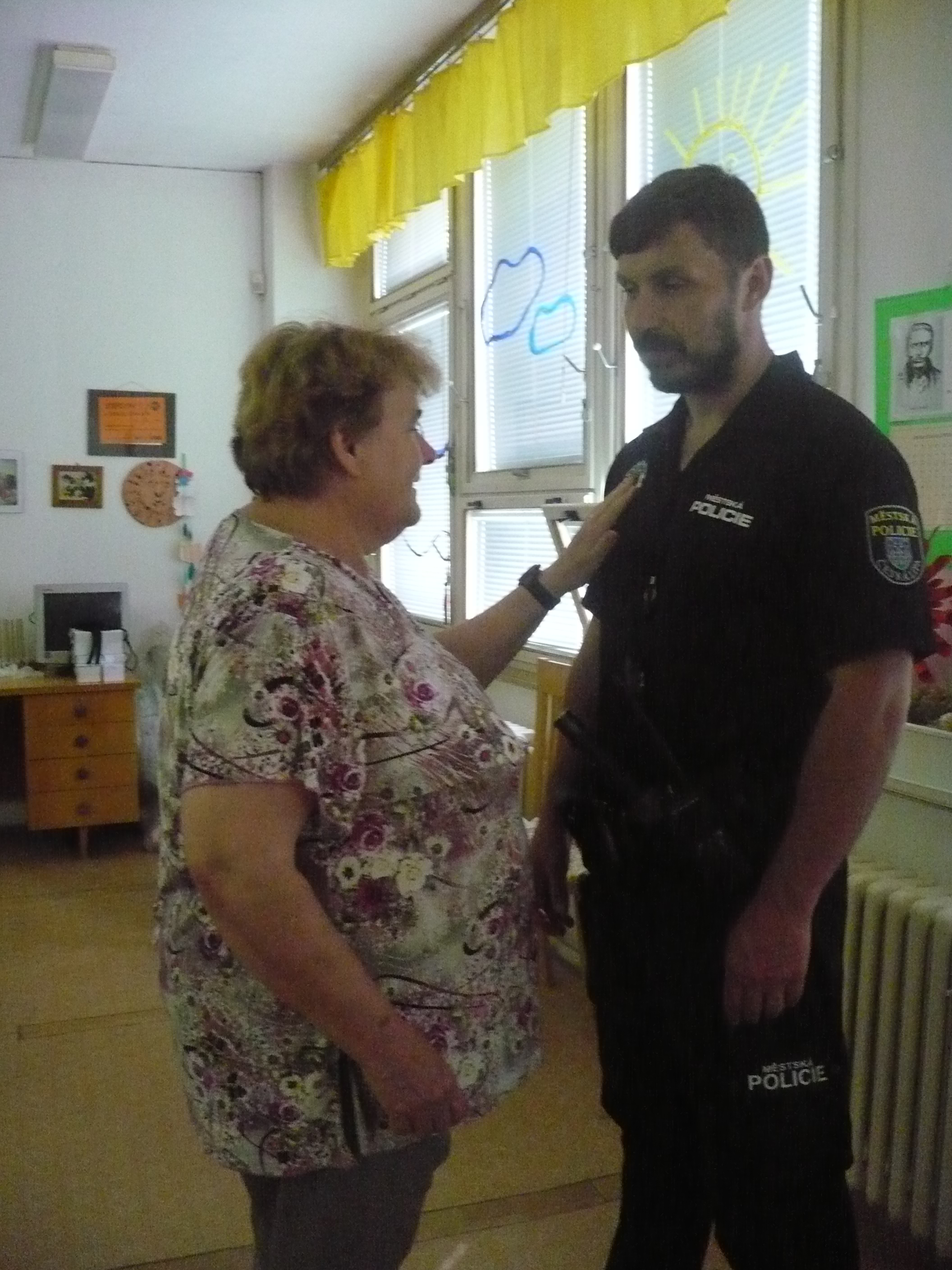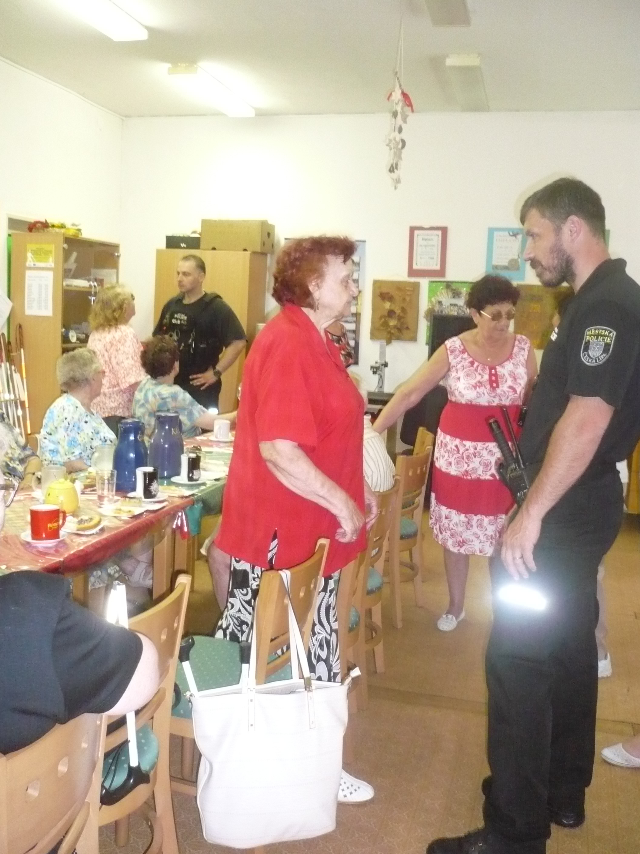 V rámci poučení našich uživatelů o bezpečnosti a možnostech zavolání o pomoc na městskou policii připravili dva příslušníci zajímavou přednášku s praktickými radami. Teď už víme, jak se bezpečně pohybovat po městě, jak se ochránit před napadením, víme o možnosti kontaktovat městskou policii při neohlášené a nečekané návštěvě doma, ale i při různých problémech např. ztrátě orientace ve městě a mnoha dalších. Poskytli nám i možnost prohlédnout si hmatem výstroj a výzbroj na uniformě.