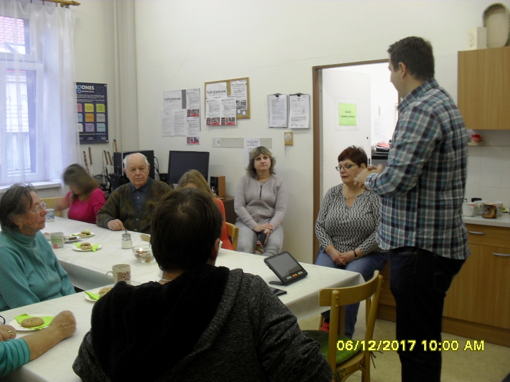 Ve středu 6. prosince 2017 se konala beseda s panem Kavanem, zástupcem firmy Adaptech. Tato firma se nezabývá jen prodejem pomůcek pro zrakově postižené, ale podílí se i na vývoji pomůcek, zjišťuje názory zákazníků a své služby stále zlepšuje.
