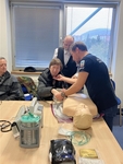 Bylo to velice obohacující, dozvěděli jsme se jak reagovat a rozpoznat zda je člověk v bezvědomí, jak přivolat pomoc a jaké informace jsou pro záchranáře důležité, což jsme někteří vůbec netušili. Přednášející, vtipný pan Voleník nás seznámil s dispečinkem, jak funguje, jak je již dokonalý a pomáhá při záchraně životů. Někteří si na figuríně vyzkoušeli uvolnit dýchací cesty a masáž srdce, což není úplně jednoduché a fyzicky náročné. Osahali jsme si a vyzkoušeli přístroje a pomůcky, které používají záchranáři. Bohužel jsme si nemohli prohlédnout sanitní vůz, jelikož byli všechny vozy v terénu, ale domluvili jsme se, že se znovu setkáme.