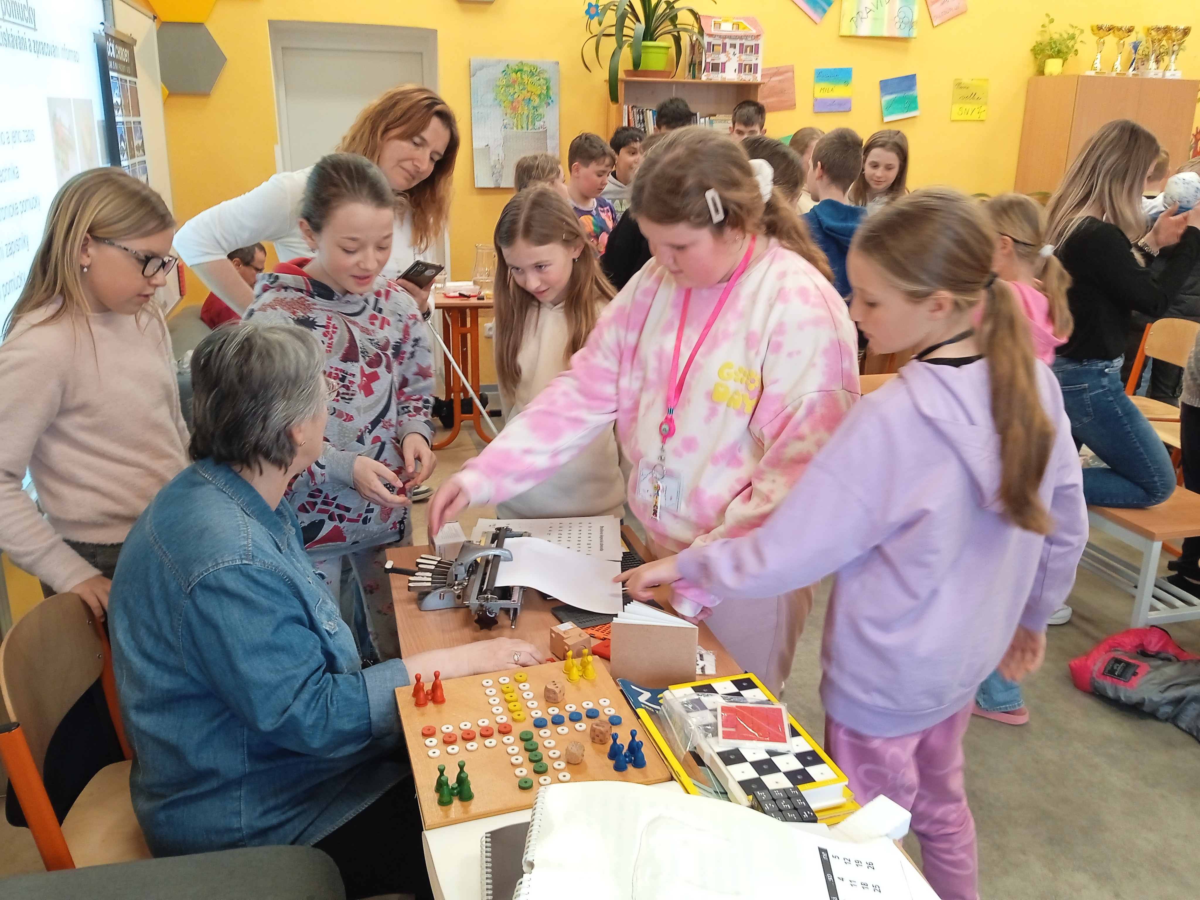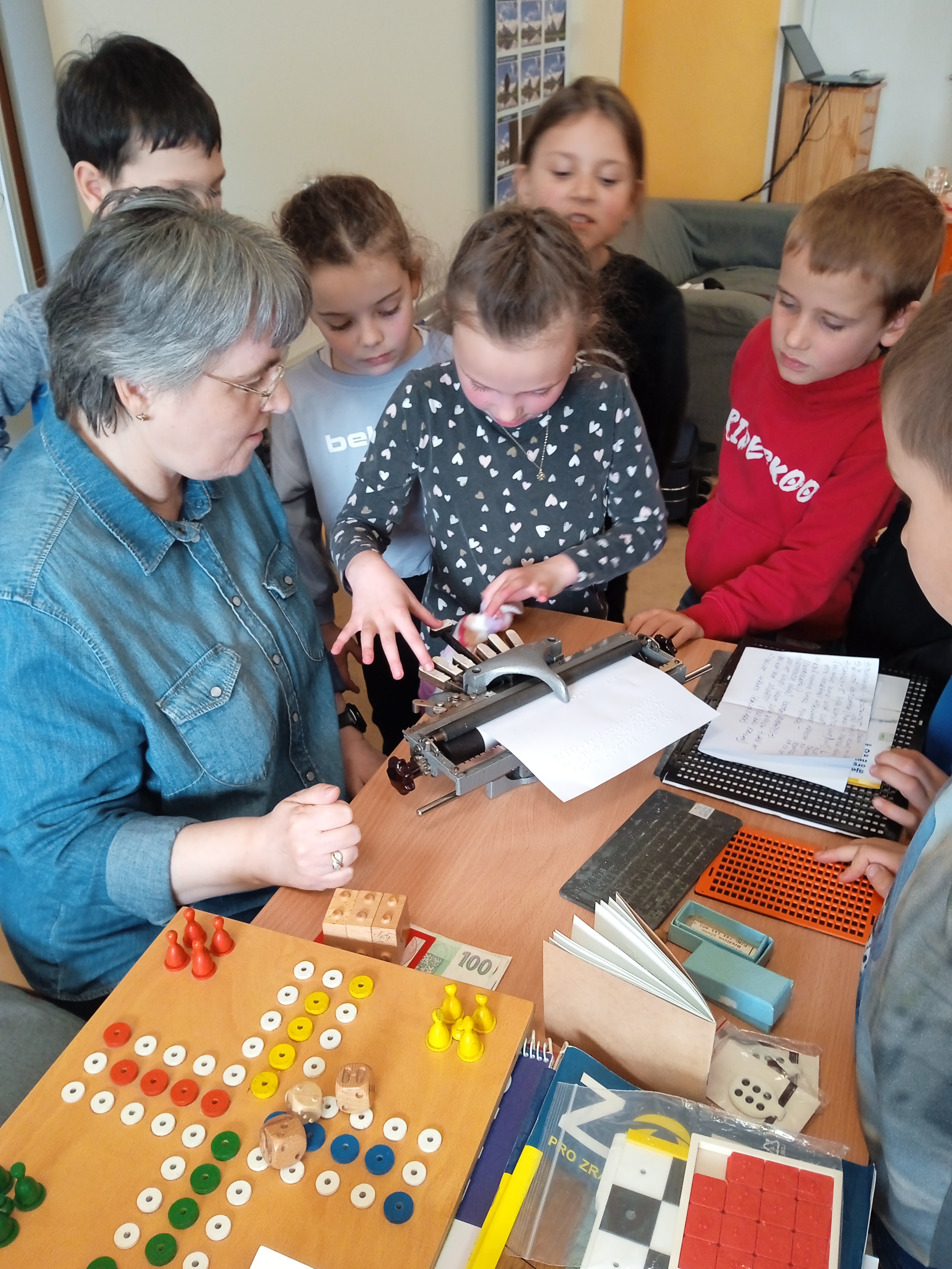 Největší úspěch však slavila praktická část. Děti si samy vyzkoušely chůzi s bílou holí, nasadily si simulační brýle, které navozují různé typy zrakového postižení, a na speciálním stroji si napsaly své jméno v bodovém písmu. Pro mnohé to byl první kontakt s tímto světem – a o to větší bylo jejich nadšení a zvídavost.