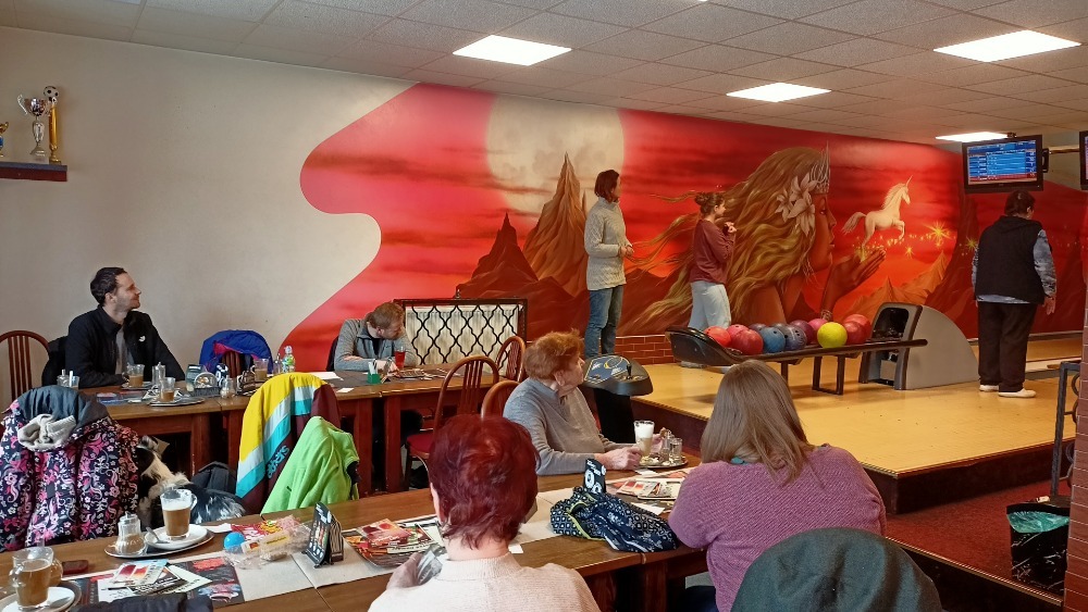 V sobotu 15.2 jsme se sešli v Nové Pace, jak už je tradicí, před restaurací U Stránských. Chvíli jsme postáli a počkali, až dorazí všichni a přesunuli jsme se do restaurace. Vaří zde opravdu dobře, jídla tu připravují dle tradiční české kuchyně a za rozumné ceny. Poté, co jsme si pochutnali na dobrém obědě, jsme se postupně přesunuli do Sportovního centra. Obsadili jsme opět dva stoly a dvě bowlingové dráhy. Všichni, kdo chtěli hrát, se tak měli možnost zdokonalit ve hře. Poseděli jsme společně u kávy a popovídali si. Za měsíc se zde opět sejdeme na další bowlingový trénink.