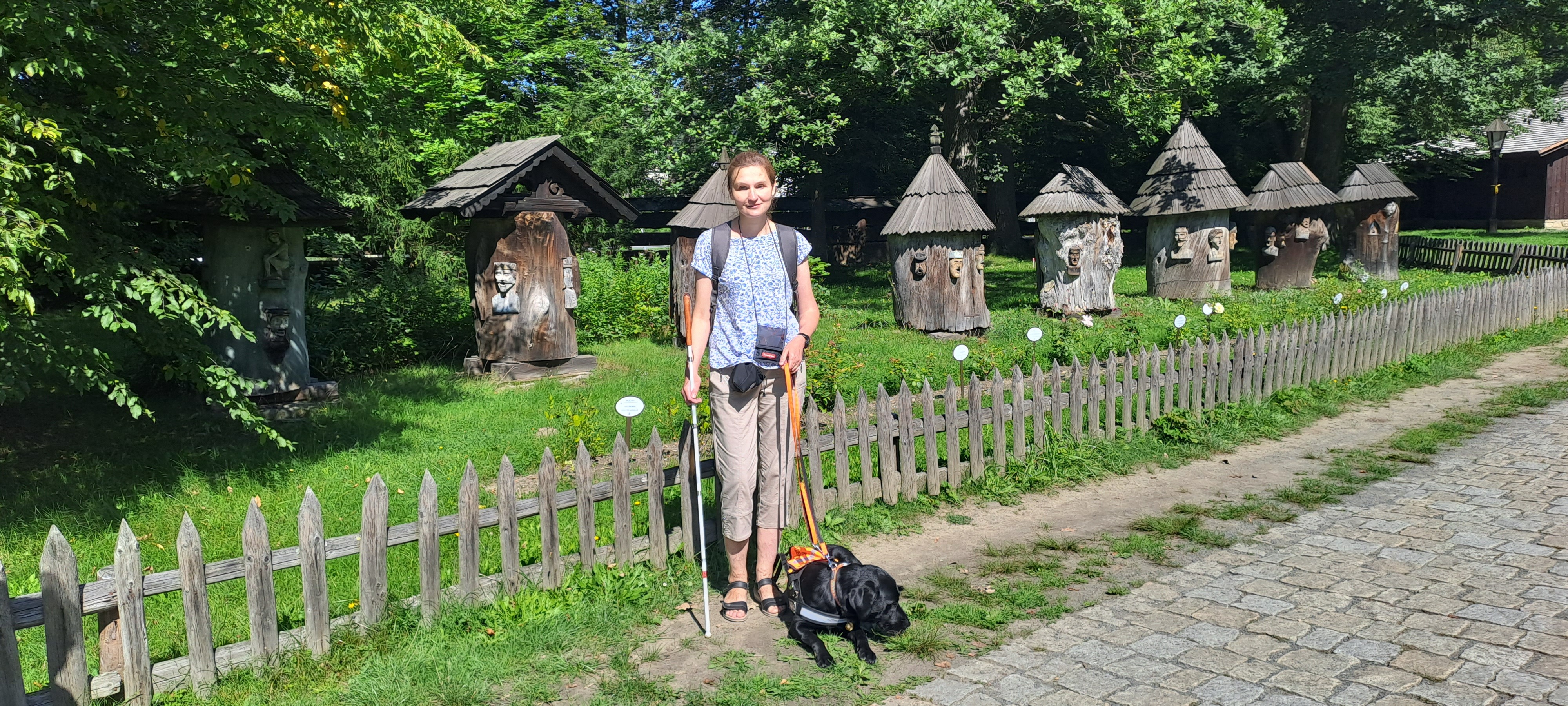 Cílem naší cesty byl místní skanzen. Cestou na místo určení nás ještě čekala zastávka ve vyhlášeném obchodě s názvem Cyrilovo pekařství, které se zaměřuje na výrobu výborných frgálů, neminula nás ani procházka parkem se spoustou soch, jež jsme si mohly osahat. Po příchodu do skanzenu rozděleného do tří areálů jsme si v Dřevěném městečku dopřály odpočinek na občerstvení. Při prohlídce skanzenu jsme nahlédly do interiéru chalup, do kostelíka a na Valašský Slavín se symbolickými i skutečnými hroby výjimečných osobností regionu, např. Jana Karafiáta, manželů Zátopkových, aj. Prošly jsme Mlýnskou dolinu, ve které nás nejvíce oslovila kovárna a vozovna se starými dopravními prostředky a zemědělskou technikou. Výletu se s námi poprvé zúčastnila i vodící fenka Isha, která doprovázela svoji nevidomou paničku a svou premiéru na společném výletě výborně zvládla. V odpoledních hodinách jsme se vracely plné nových zážitků, vjemů i informací. Děkujeme všem zúčastněným za krásně strávený den a těšíme se na další výlety.
