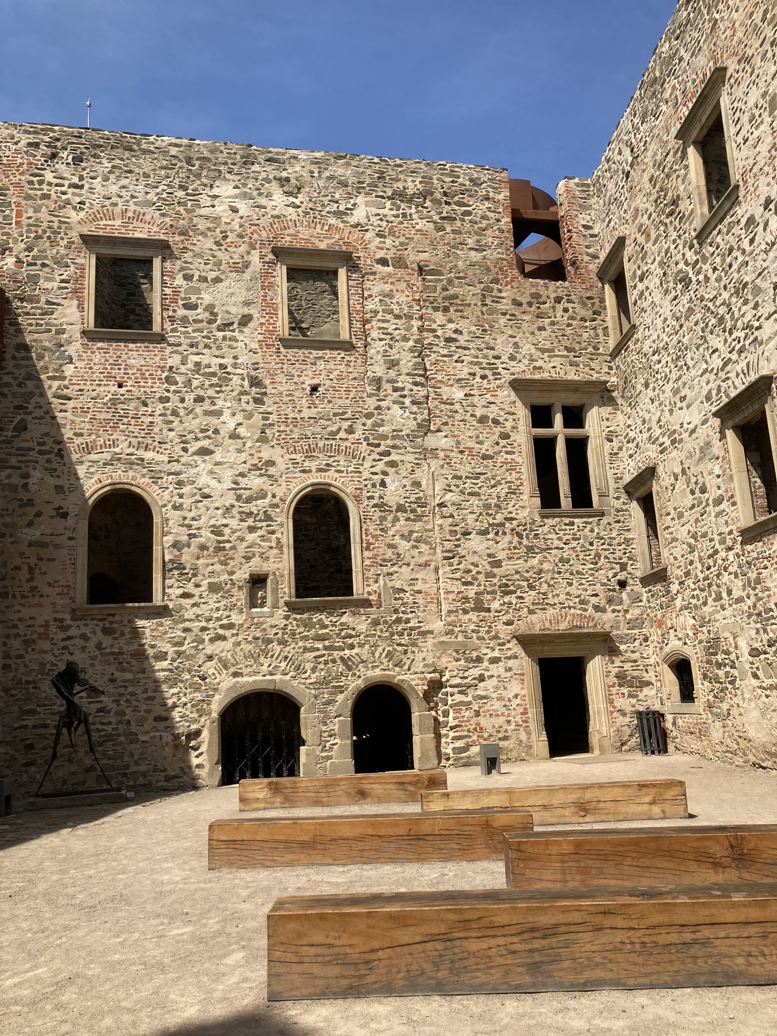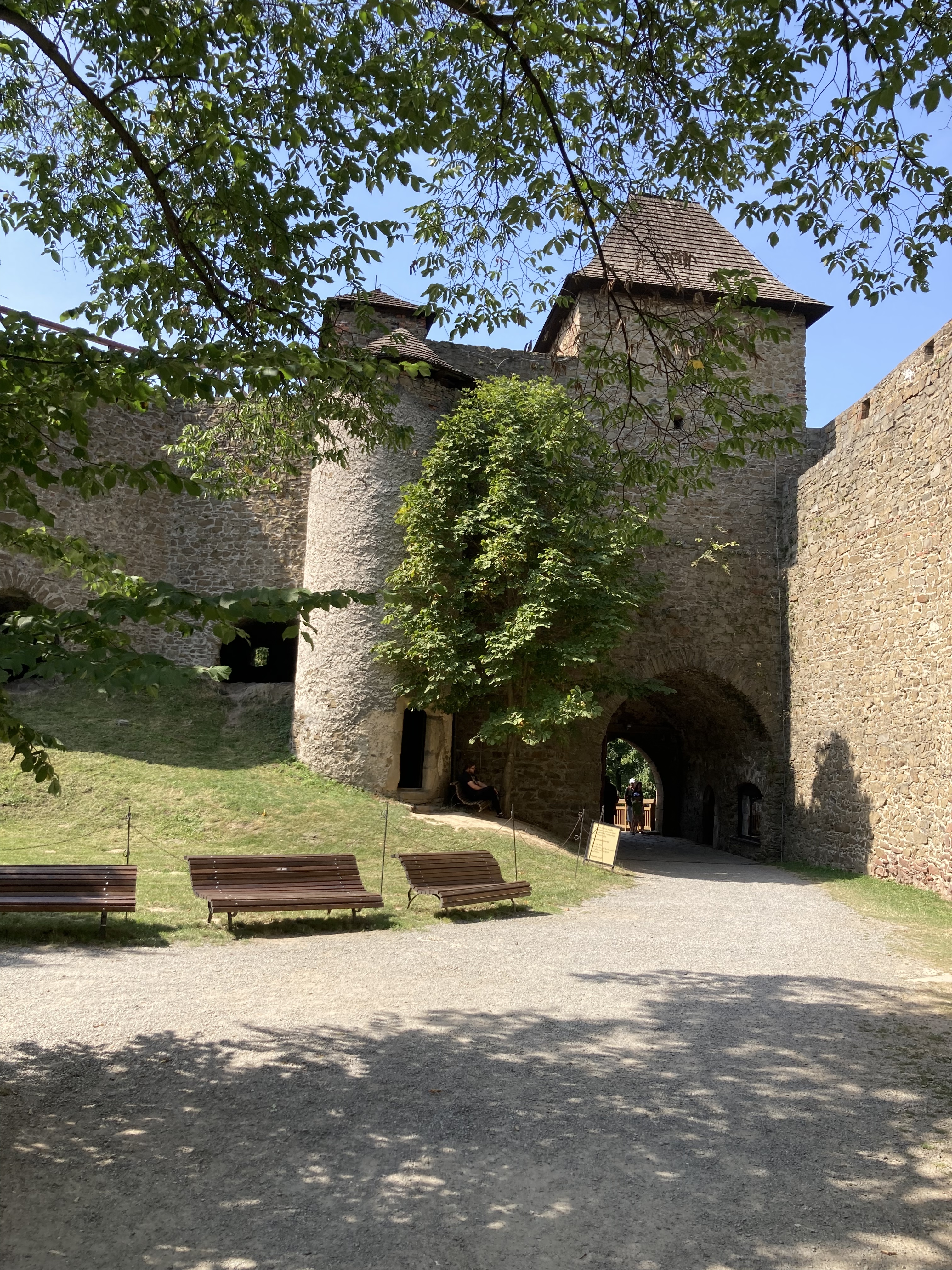 Již při příchodu k hradu nás vítaly krásné historické hradby a výhledy široko daleko. Po menším odpočinku a obědě jsme vyrazili na komentovanou prohlídku, v jejímž průběhu jsme se dozvěděli spoustu zajímavých informací, týkajících se především historie a současnosti hradu. Postupně jsme prošli jednotlivá nádvoří, vystoupali na vyhlídkovou věž a navštívili také expozici uměleckých kovářů.
