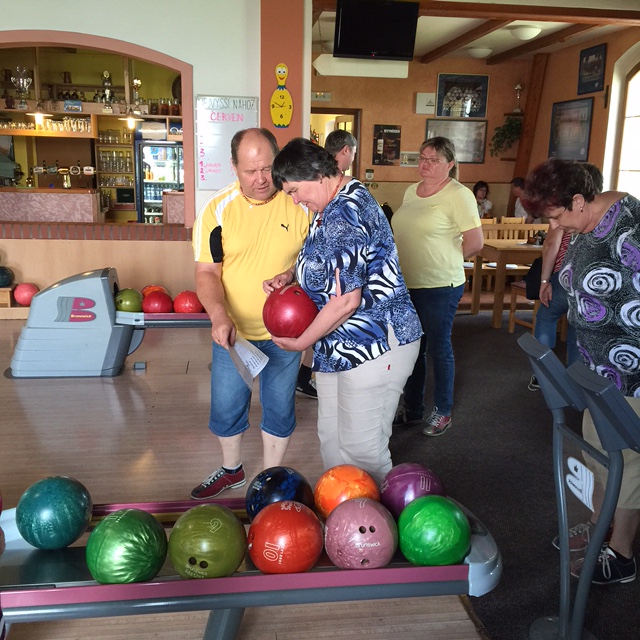 Ve čtvrtek 2. června jsme uskutečnili další z plánovaných akcí. Se svými přáteli z Oblastní odbočky SONS ČR, z.s., Kyjov, kteří přijali naše pozvání, aby přijeli poznat náš region, jsme si prohlédli nádvoří zámku Hrubá Skála - www.hrubaskala.info - odsud jsme se vydali pěšmo skrz Myší díru, po turistické stezce do Sedmihorek, kde jsme v restauraci Bowling Sedmihorky – www.bowlingsedmihorky.cz - chutně poobědovali a následně sehráli 2 kola v bowlingu. I když to byl jenom takový přátelský „čudlmač“, kyjovské tsunami nás spolehlivě smetlo. V absolutním pořadí získali 4 místa z prvních pěti - 1. p. Julínek, 2. p. Oršuliak, 3. p. Pavel Komosný. Jediný reprezentant za Semily se umístil až jako čtvrtý. Páté místo obsadila žena – pí. Medková a jak jinak, také z Kyjova !