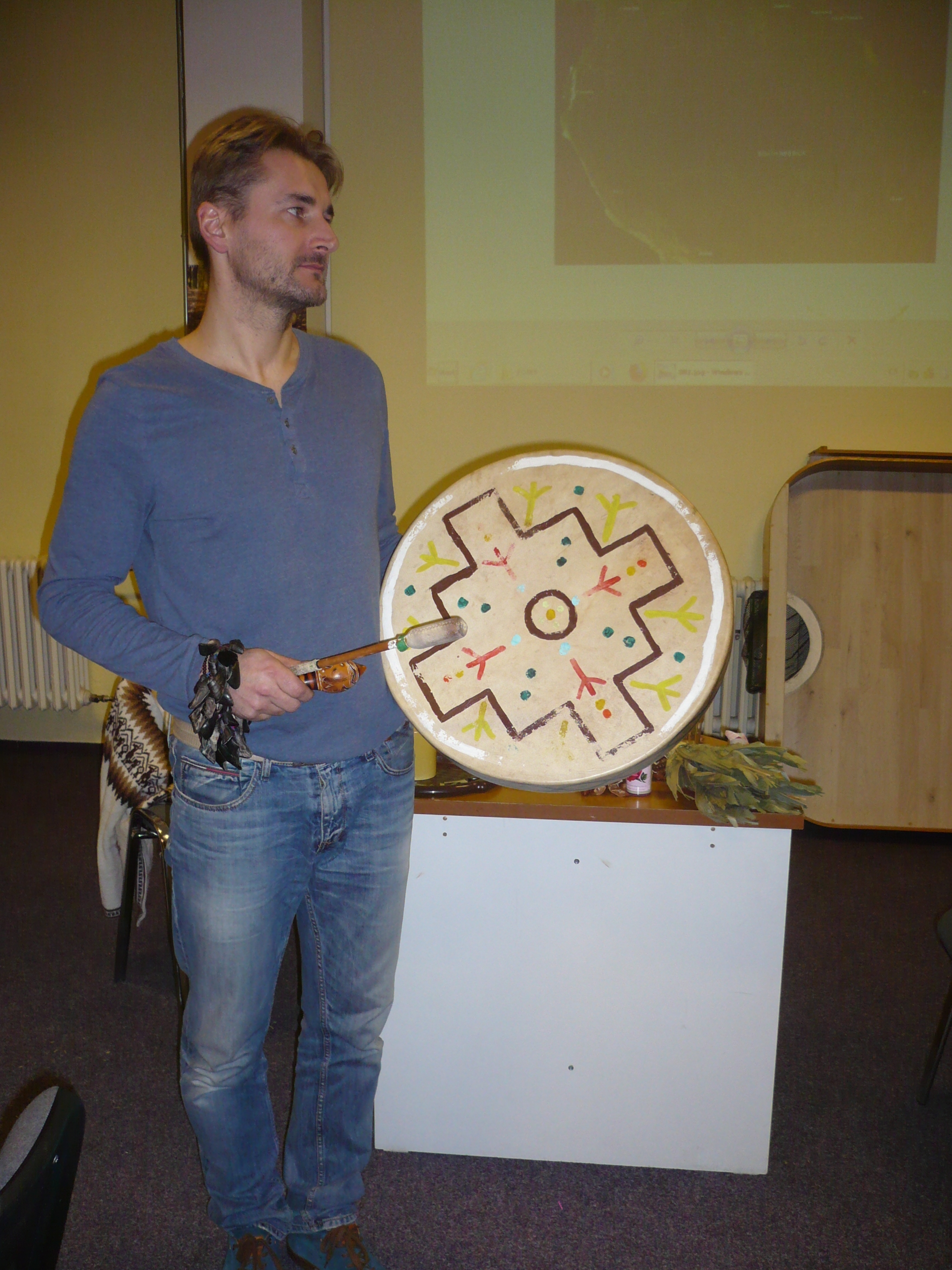 Během přednášky vyprávěl, co zde zažil, jací zdejší obyvatelé jsou, představil nejrůznější zajímavosti apod. Věnoval se také tématice šamanství. Zažili jsme velice zajímavé vyprávění, promítání a popis vybraných fotografií a předvedení hry na šamanský buben a různá štěrchátka z přírodních materiálů či proces "očištění" prostorů pomocí suchých bylin z Peru.