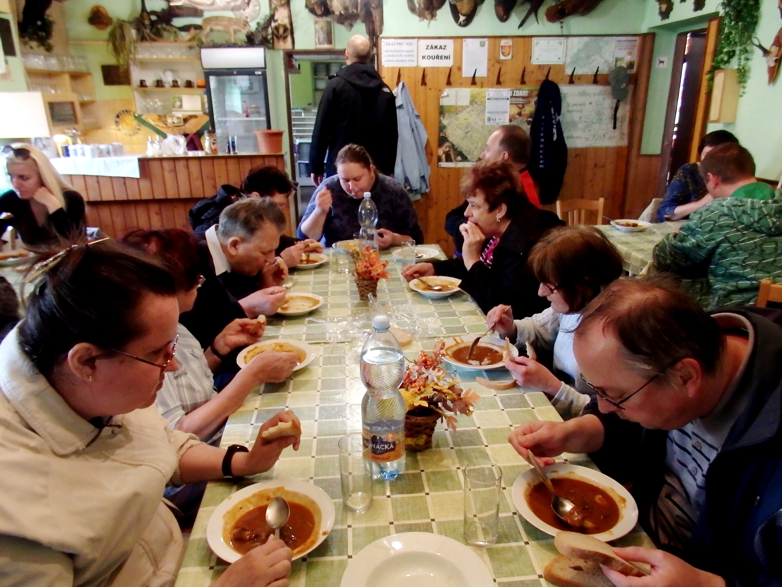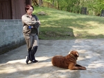 Tentokrát pro nás naše dobrovolnice Liduška nezajistila jenom zvěřinové hody, což obnášelo zvěřinové klobásky, dančí a mufloní guláš, ale také domluvila besedu s paní Kuchařovou, která má chovateskou stanici od Hošťálky, plemene Chesapeake Bay retrieverů. Mezi nás přivedla svoji fenku Attu a začalo dlouhé a velmi poutavé vyprávění o výchově čepesíka, jak se lidově u nás tomuto plemeni říká.