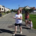 Abychom vyšly s časem, na místo jsme přijely autobusem, kde nás čekal náš předseda, jelikož ono zmíněné cvičební hřišě je poblíž jeho domova. U domu nás přivítala Marcelka, jeho žena, ve cvičebním úboru ala 70desátky a klasicky po našem - chlebem a solí...