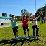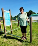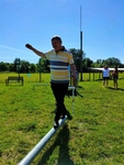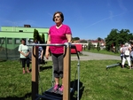 Na plácku jsme prostřídali všechny cvičící stoje, převážně zde byly stroje balanční, výborní pomocníci na udržení stability, podporu koordinace svalů. Ono při špatném zraku, nebo přímo u nevidomých lidí je s rovnováhou docela problém a zde byla velká příležitost procvičit balanc a vlastní rovnováhu. Na nízkých či vysokých kladinách jsme cviky s nevidomými prováděli kolektivně. Pak jsme komentovanou procházkou poznávali okolí a při návratu na hřiště nám Marcelka nabídla sladké či slané občerstvení.