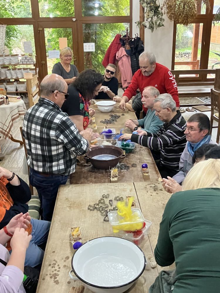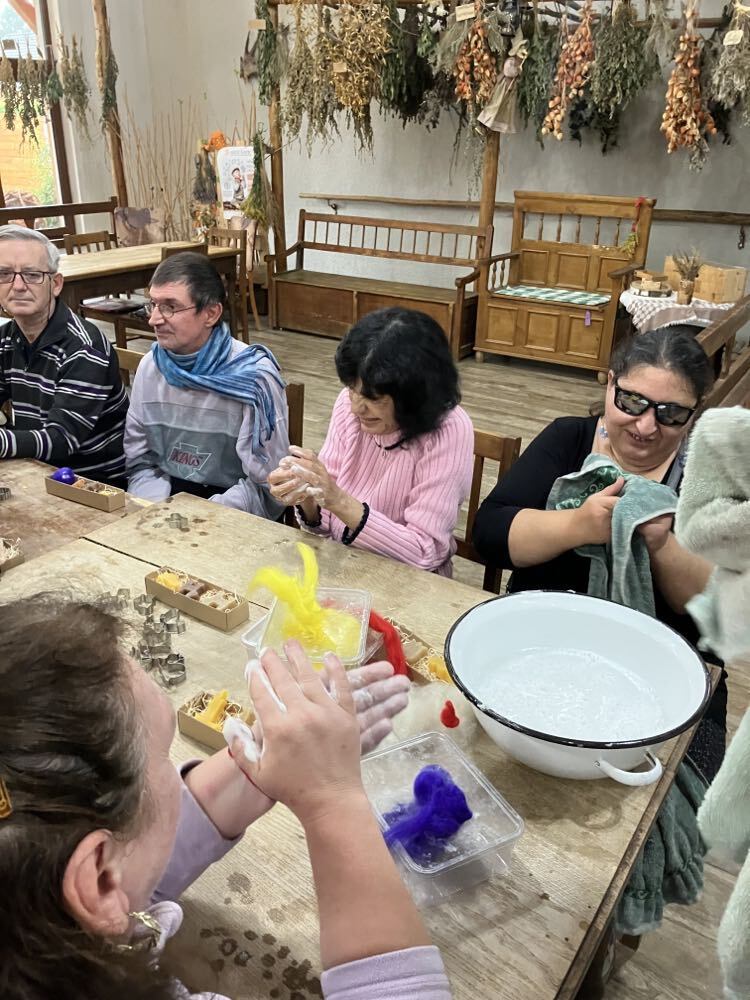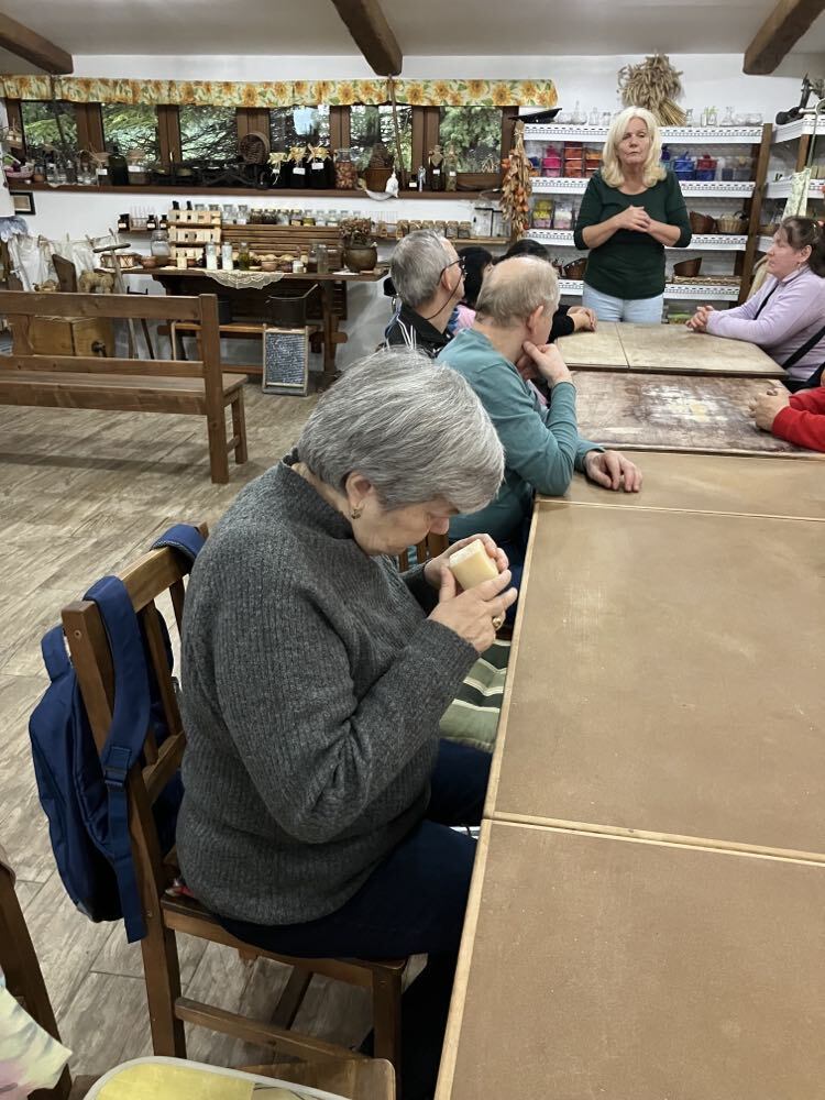 Vyrobili jsme si svá vlastní mýdla různých tvarů, žinku s mýdlem 2v1 a krásně si to zabalili, což se nám velmi líbilo, jelikož to můžeme věnovat jako dárek svým blízkým. Prošli jsme se po chodníku naboso a poté jsme si v jejich krásném obchůdku nakoupili již dárky na Vánoce.