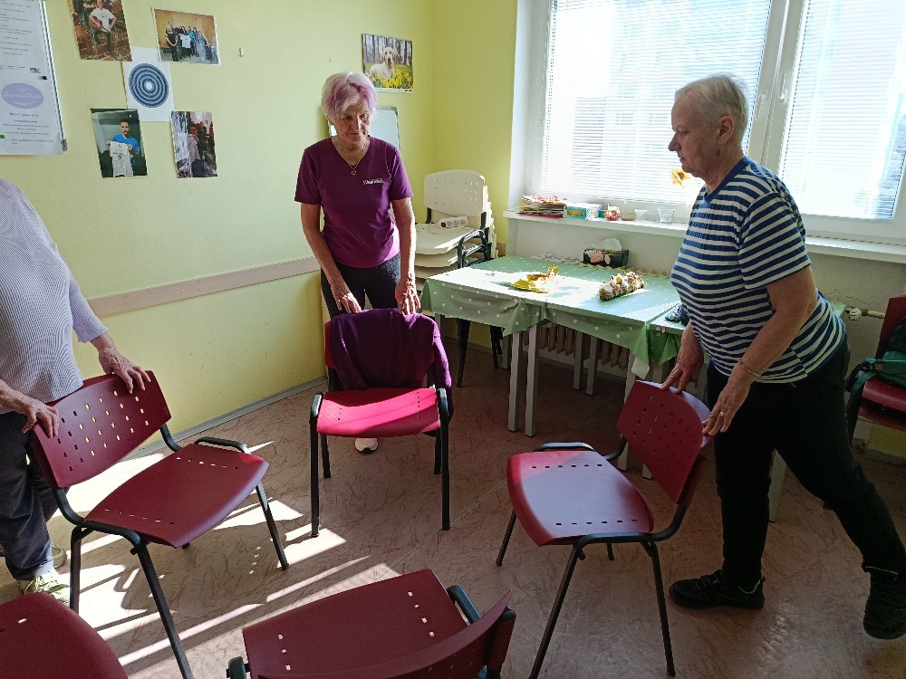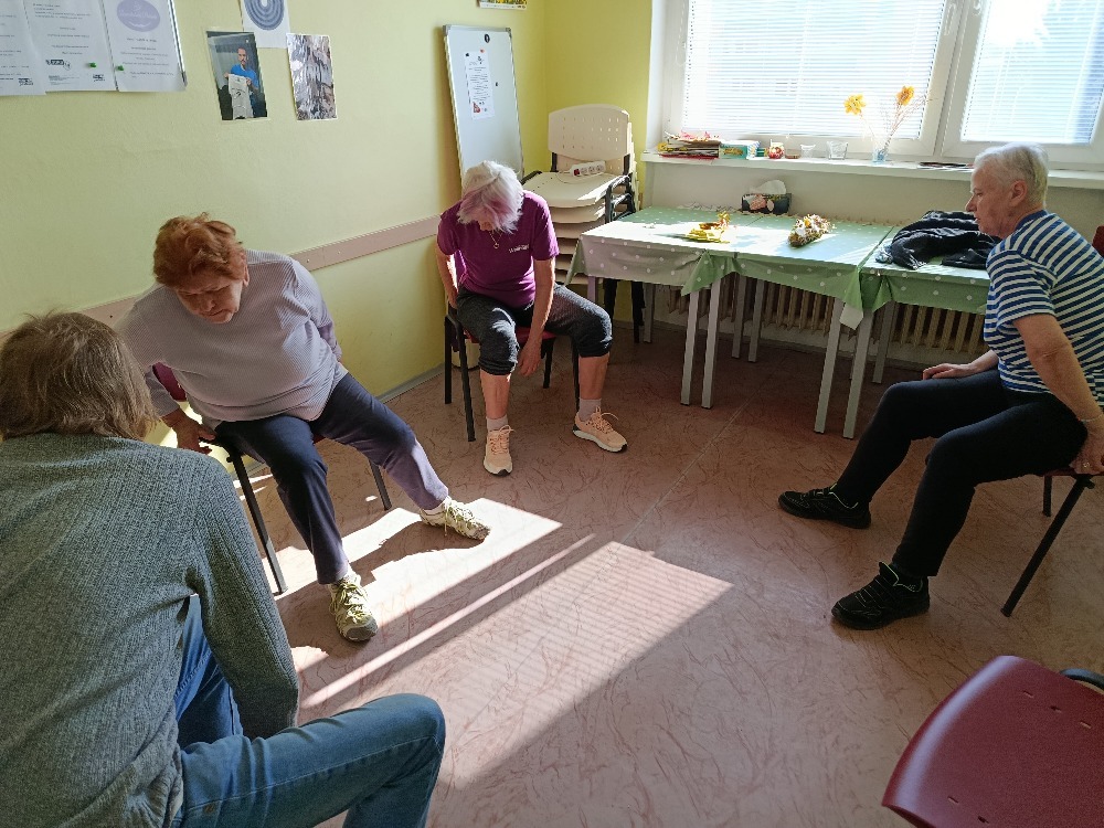 Na začátku měsíce dubna jsme se opět sešli v naší klubovně k oblíbenému cvičení na židlích. Naše členka paní Pokorná vedla cvičení tak, abychom se pěkně zpevnili, protáhli a uvolnili naše ztuhlé svaly. Po cvičení jsme se cítili hned lépe. Potom jsme ještě poseděli u kávy a popovídali si.