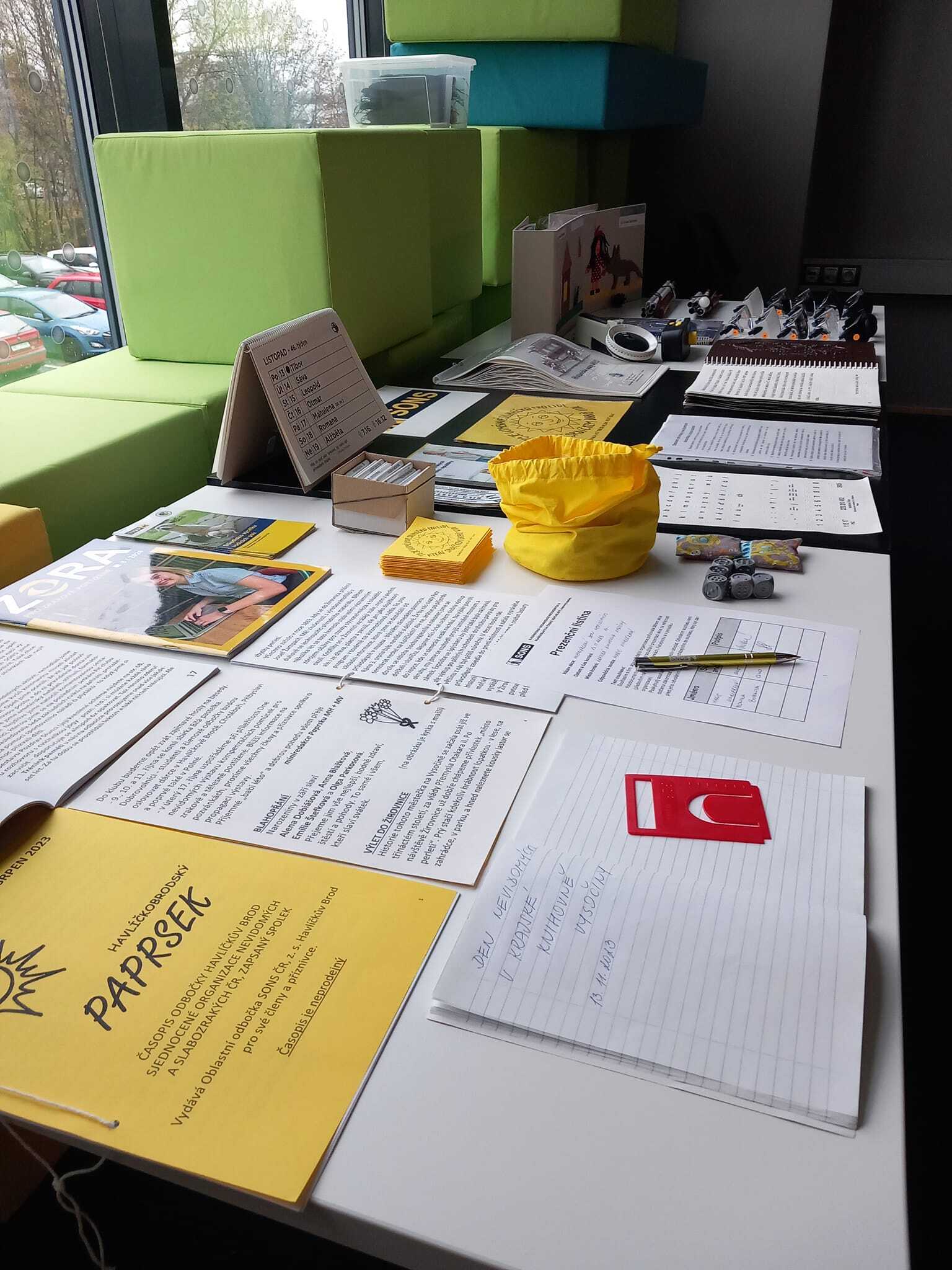 Když se nějaká akce koná už po několikáté, je to vlastně již tradice, že? Pak tedy máme s Krajskou knihovnou v Havlíčkově Brodě takovou pěknou listopadovou tradici J Jak to celé začne? To se domluví termín kolem Mezinárodního dne nevidomých, který připadá na 13. 11. – letos to bylo v pondělí, a nám se to datum moc líbilo. Protože se místo v předešlém roce osvědčilo, není důvod ho měnit. Jaký bude program? Povídání o světě nevidomých, představení naší odbočky, výstavka drobných kompenzačních pomůcek, beseda s našimi členy a také účast vodicích psů. Pak už stačí „jen“ šířit pozvánky a těšit se na účast zvídavých návštěvníků.
