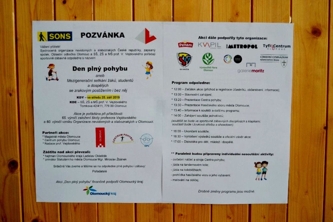 DEN PLNÝ POHYBU aneb Mezigenerační setkání žáků, studentů a dospělých se zrakovým postižením i bez něj