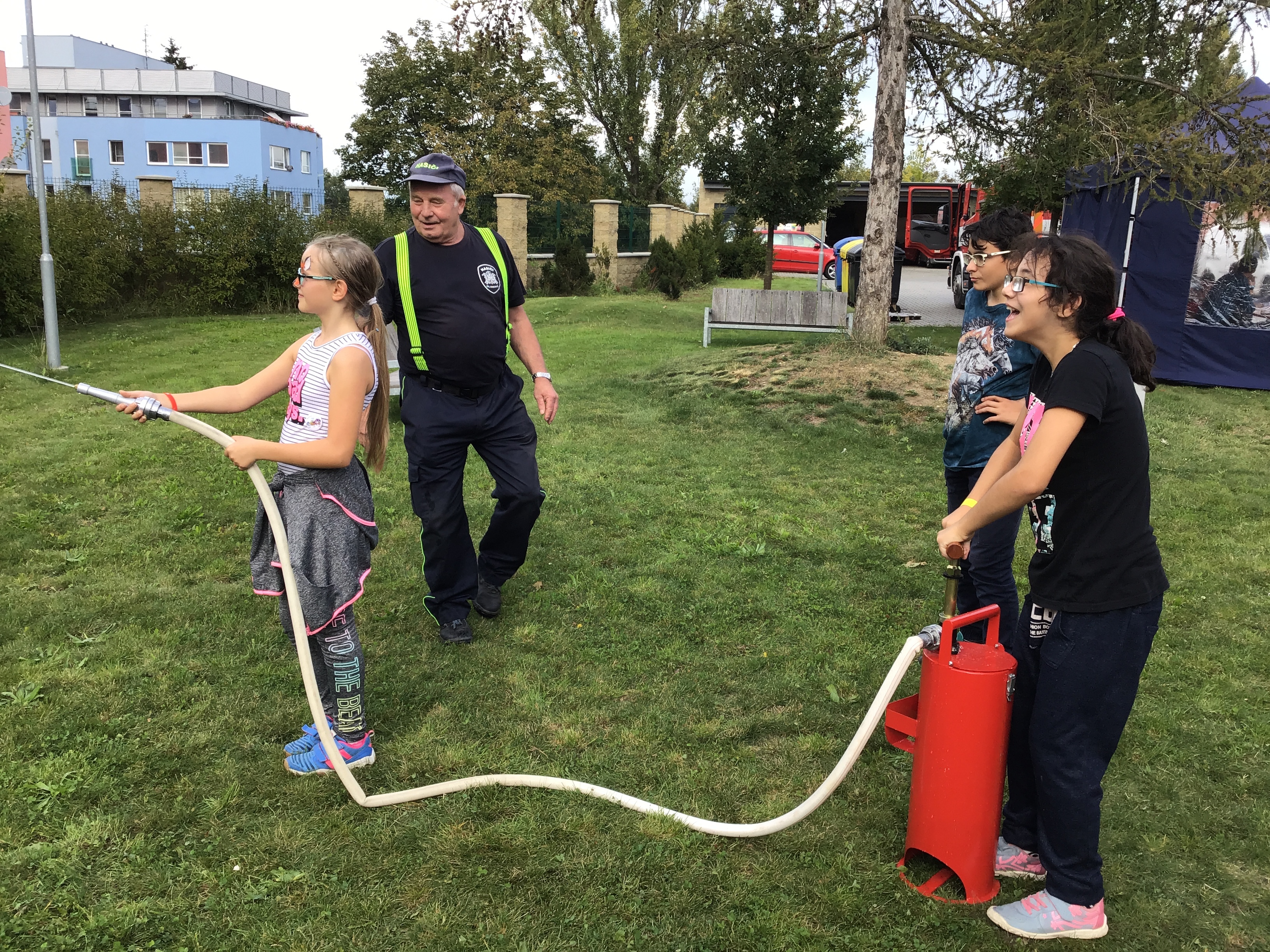Osm stanovišť s úkoly bez použití zraku (kop do míče a hod nafukovacím balonkem, čichačky, hmatačky, rozlišování barev, kranking, zvuková střelba a showdown) i nesoutěžní aktivity (neobvyklé cvičení s pracovnicemi Centra pohybu, jízda na tandemu či na koloběžce, prohlídka hasičských vozů, hašení proudnicí na ozvučený cíl, výroba vlastní placky či magnetky, skládání puzzle či malování na obličej) zaujaly všechny přítomné, zvláště pak děti – žáky školy a nedalekého Dětského domova či děti našich členů.