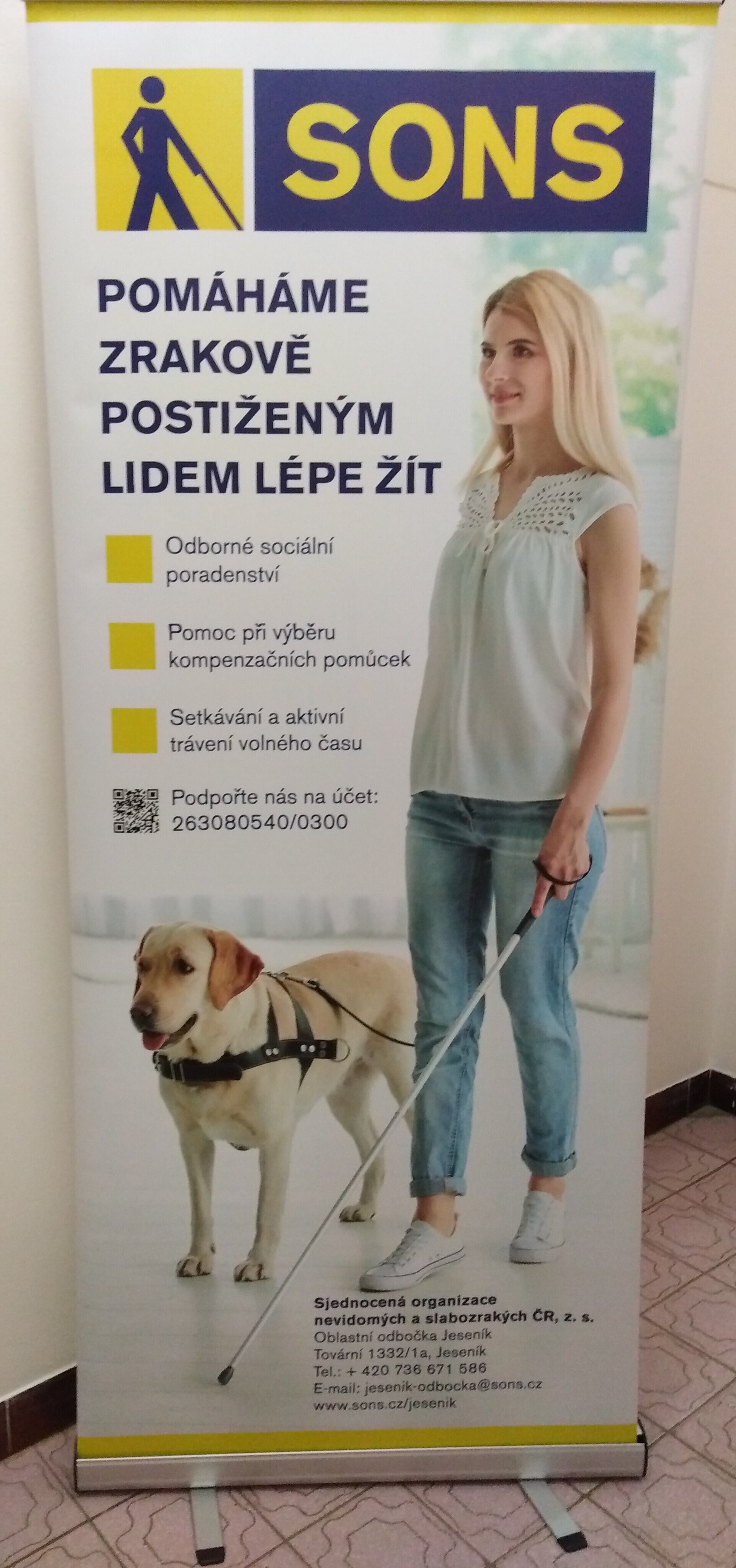 Na plotě před budovou, ve které sídlíme, máme nově umístěnou plechovou ceduli s logem a základními informacemi o naší odbočce. Nově příchozí k nám snadněji najdou cestu! Nechali jsme si vyrobit také roll-up, který využijeme zejména na veřejných či informačních akcích, abychom byli lépe vidět.