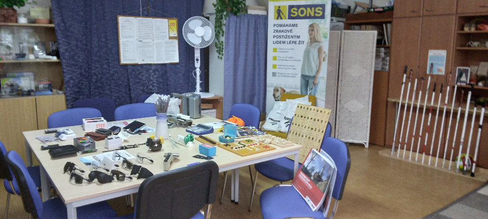 Pomůcky z projektu IROP, jehož hlavním cílem je vytvořit podmínky pro kvalitní poskytování ambulantních a rozvoj terénních sociálních služeb v rámci 26 odboček Sjednocené organizace nevidomých a slabozrakých, z.s., a to tak, aby kvalitně poskytovala stávající sociální služby pro maximální možný počet klientů.