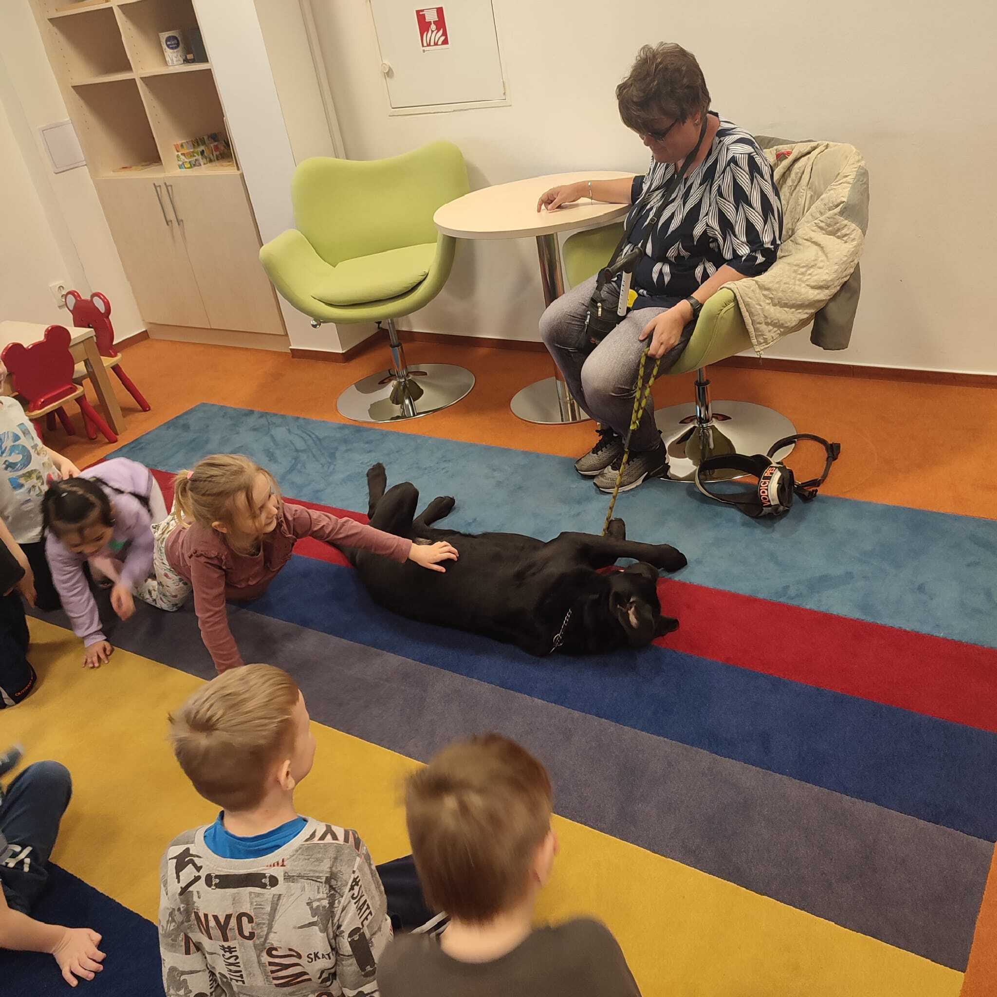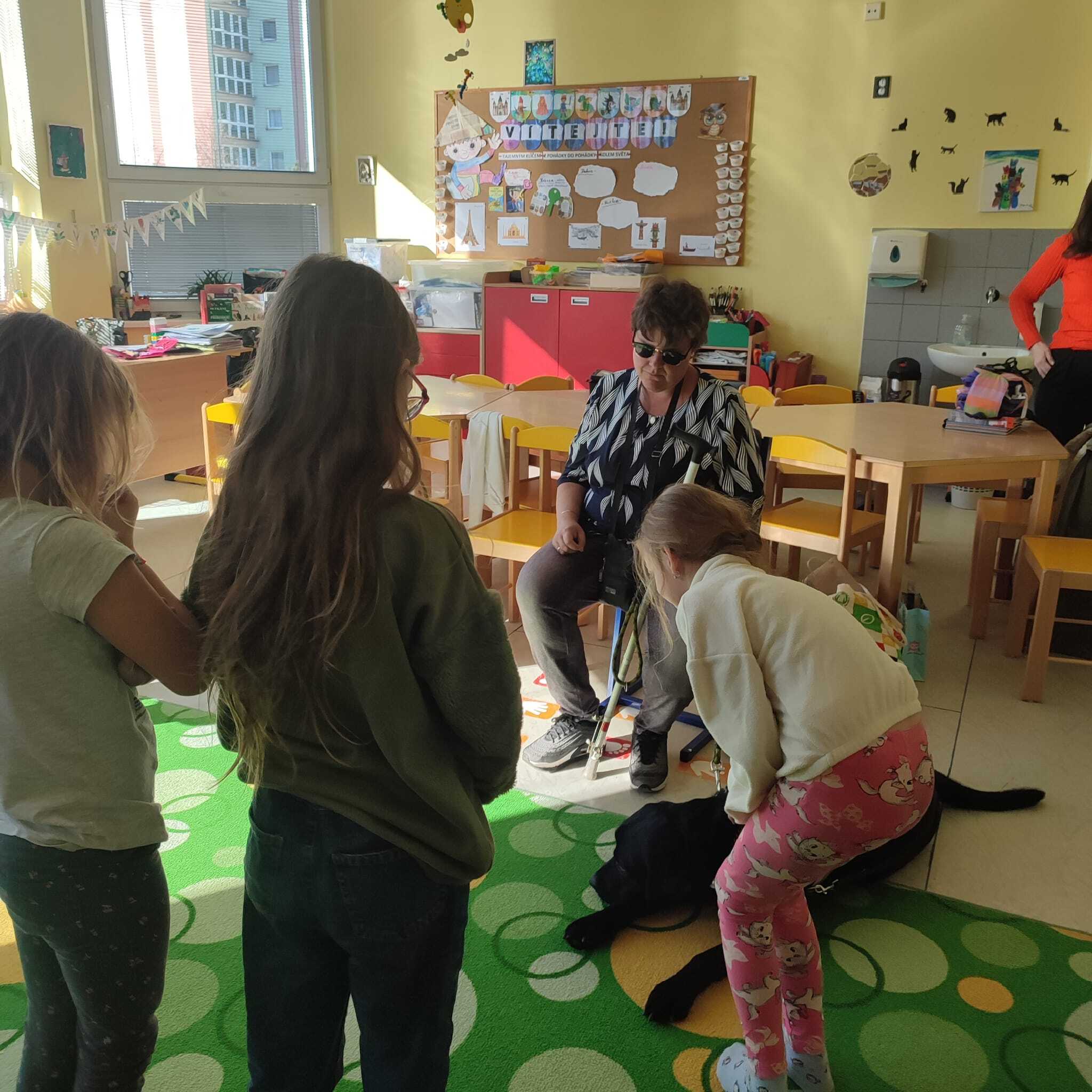 Vodící pes, ten správný parťák. Nejlepším pojítkem mezi lidmi jsou bezesporu naší psí parťáci. Paní Helena Gorecká má svého Noého. Nejen že ji samotnou baví se pohybovat mezi dětmi, ráda si s nimi povídá a navzájem se obohacují o příjemně strávený čas. Děti velmi rády poslouchají jaké to je být odkázány na pomoc psího kamaráda a jak si vlastně pomáhají navzájem.