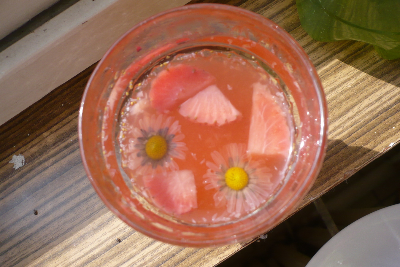 Připravíme si horkou vodu. Do vody vložíme zelený čaj, citron (bez šlupky), nakrájené jahody, jahody rozmixované s mátou, kopřivy a sedmikrásky. Dosladíme přírodním sladidlem (rostlinné sirupy např. smrkový). Necháme vylouhovat čaj dle návodu a poté ještě asi 30min.
