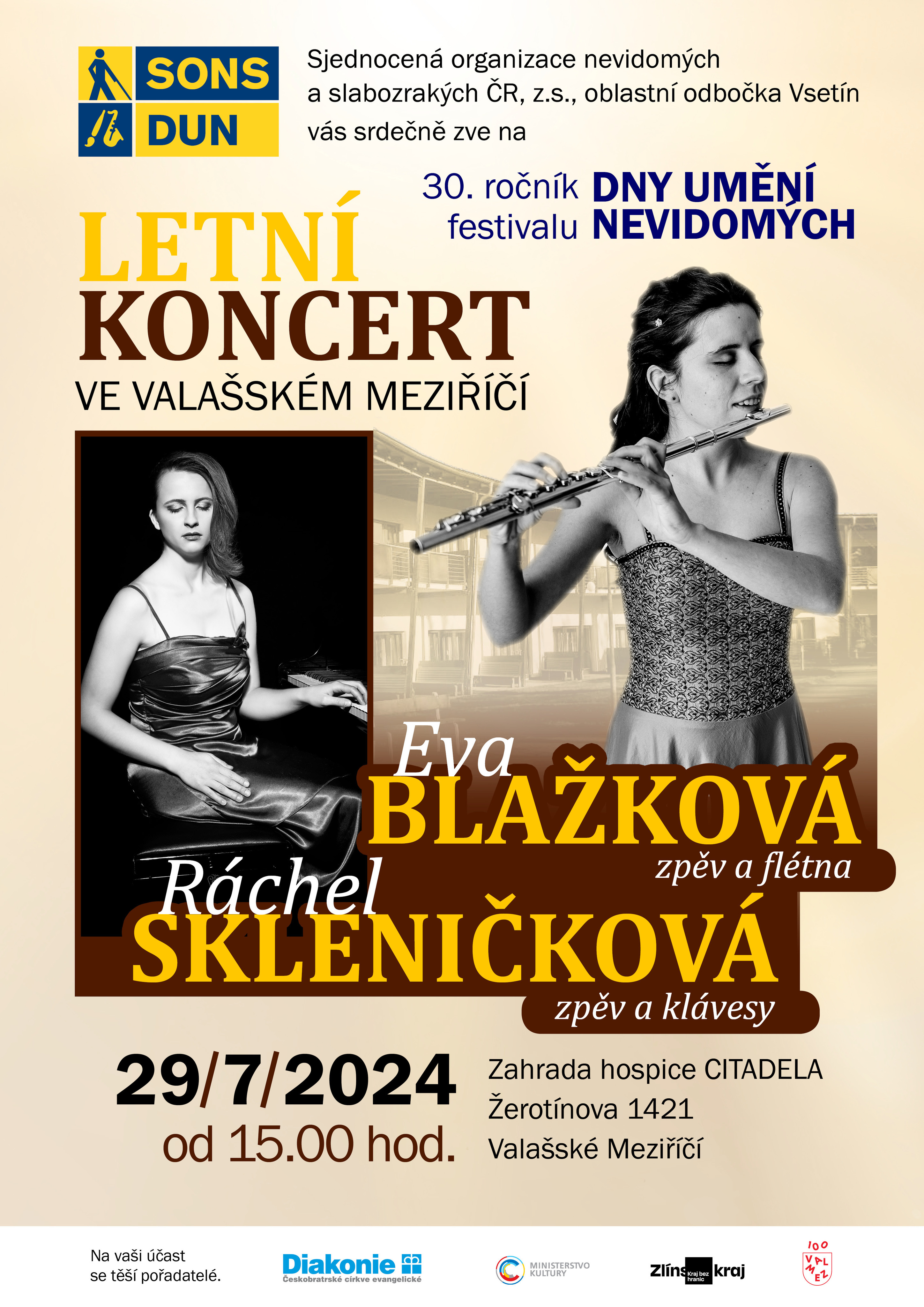 Zveme Vás na koncert Evy Blažkové a Ráchel Skleničkové, který se koná v rámci 30. ročníku festivalu Dny umění nevidomých. Eva Blažková se na koncertu představí jako zpěvačka a flétnistka a Ráchel Skleničková jako zpěvačka a klavíristka.