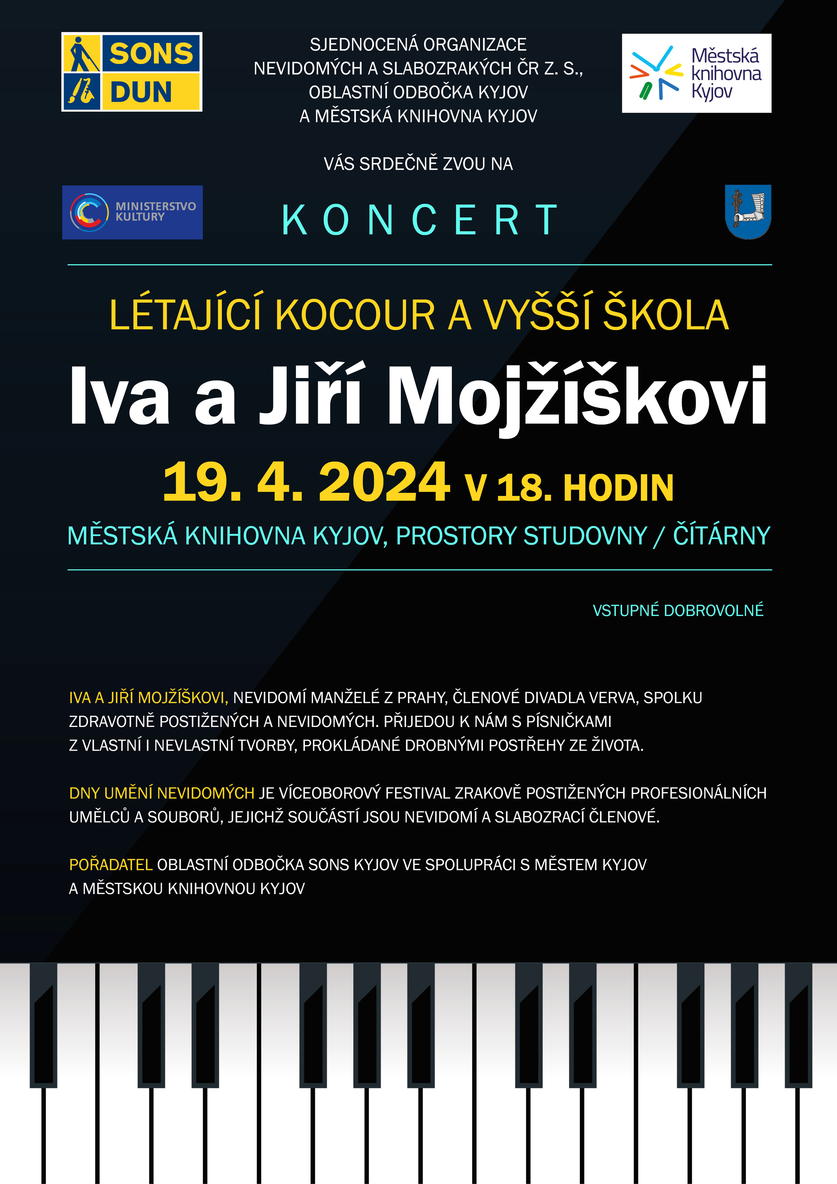 Koncert se koná za finanční podpory Ministerstva kultury ČR, města Kyjov a Městské knihovny Kyjov.
