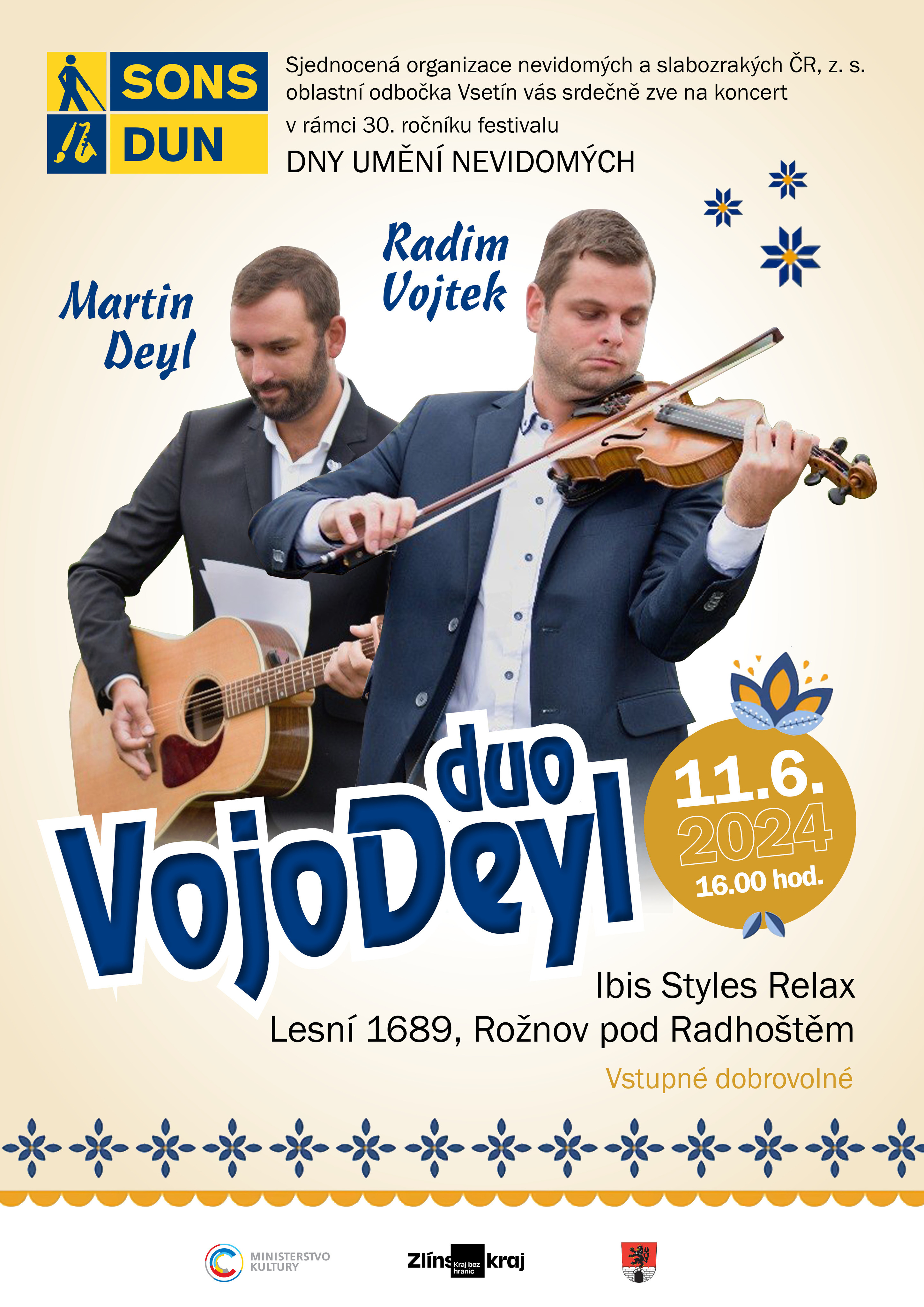 Zveme Vás na koncert Dua VojoDeyl, který se koná v rámci 30. ročníku festivalu Dny umění nevidomých.